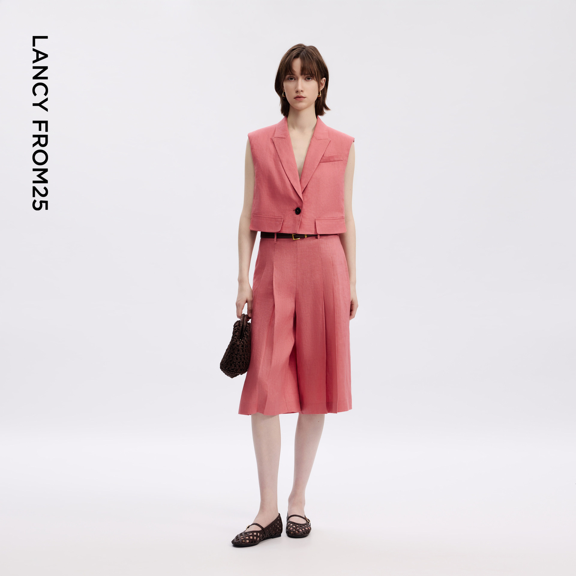 新款 上衣2026年夏季 朗姿25亚麻V领气质百搭箱型马甲优雅干练时尚