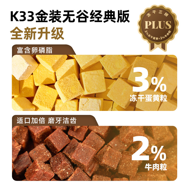 无谷高蛋白牛肉蛋黄冻干鱼油成幼犬通用主食 趣友K33狗粮PLUS金装