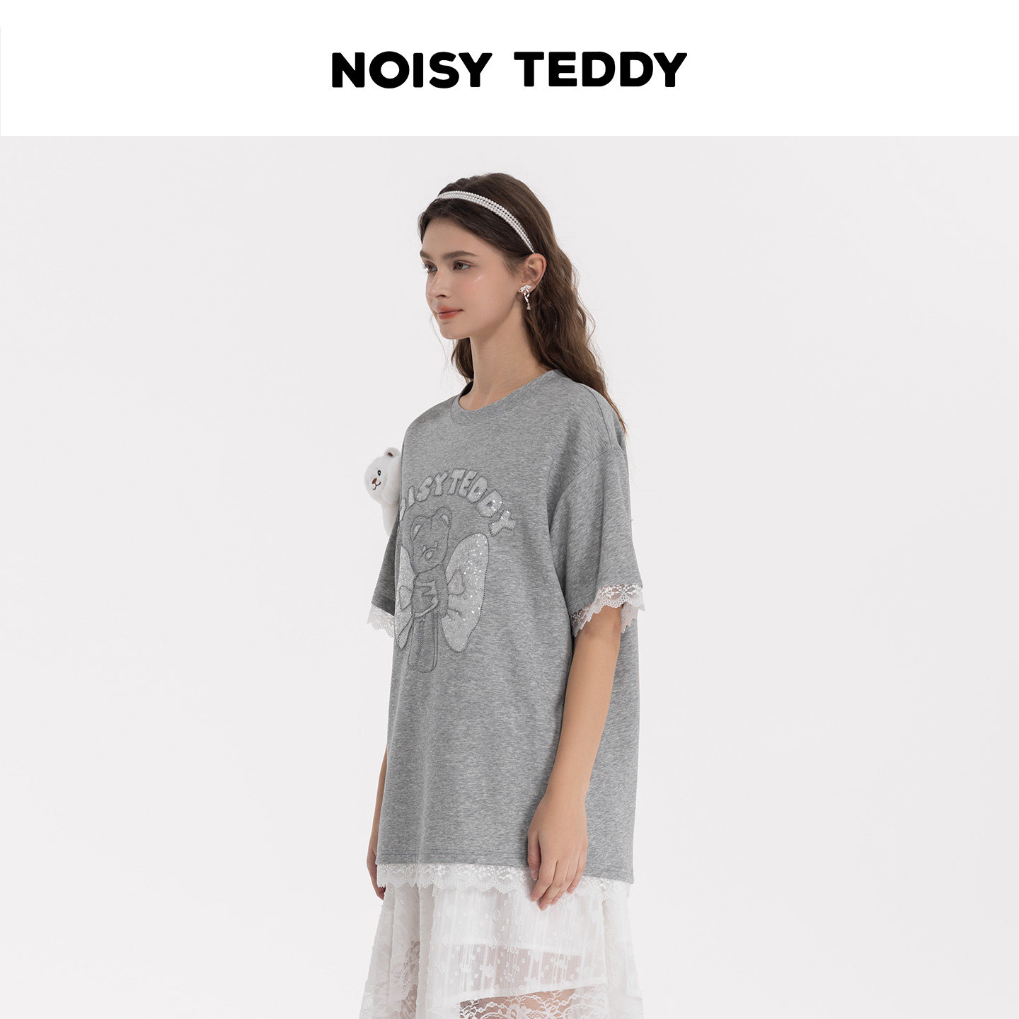 可爱蕾丝边立体熊女士圆领套头短袖 NOISY TEDDY26年夏季 新款 T恤衫
