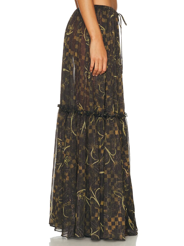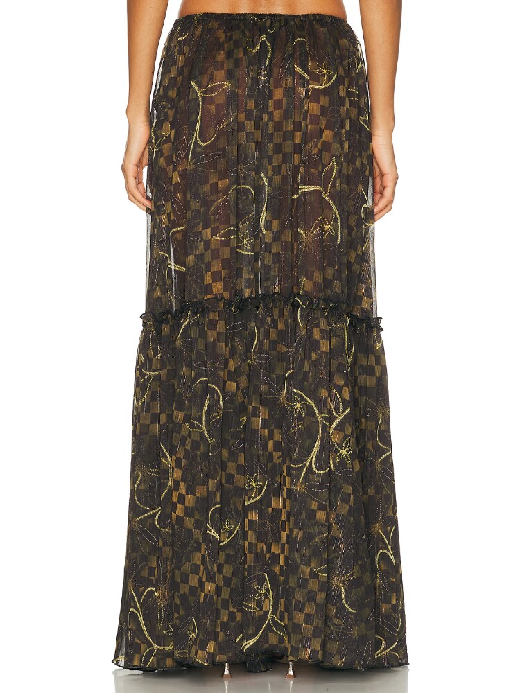 新中式 烫金网纱半身裙女开叉长裙HS0028 浮金碎影 COCOBELLA