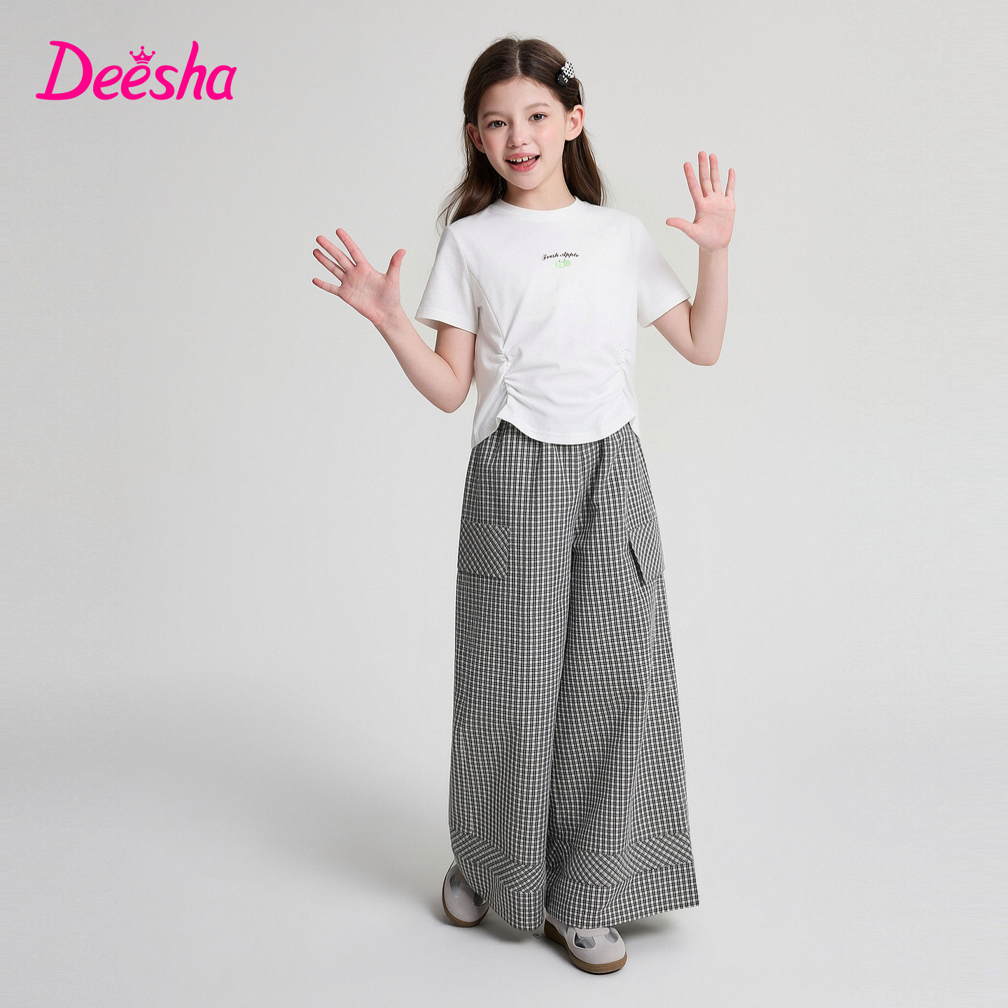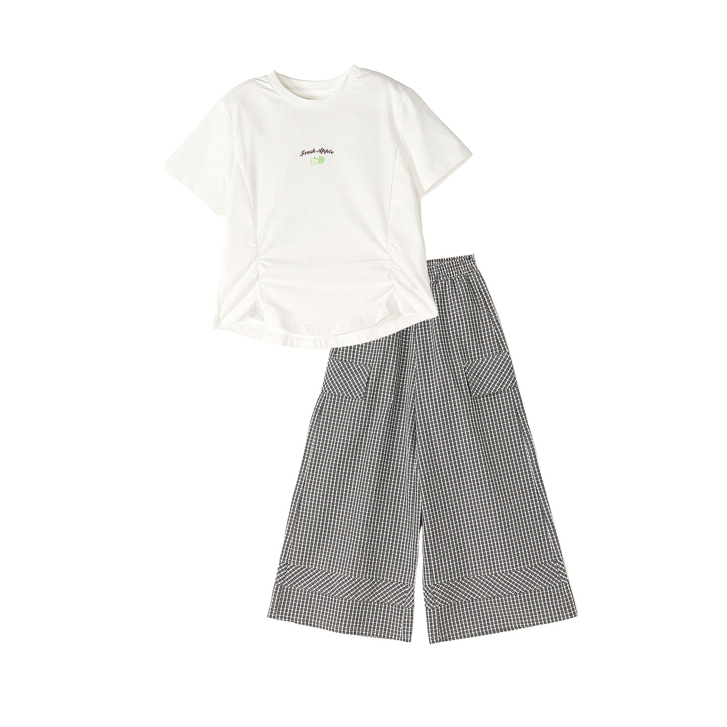 格子裤 笛莎官方童装 两件套 大童女孩儿童洋气短袖 新款 女童套装 夏季由
