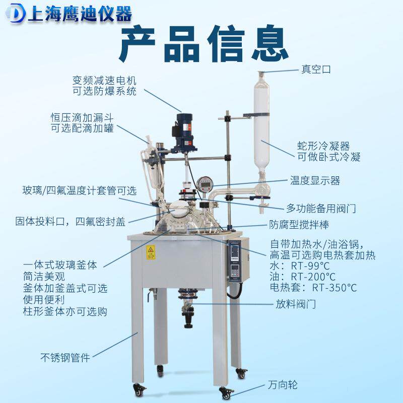 为您提供商品100L加热搅拌单层玻璃反应釜四氟搅拌桨耐腐蚀玻璃反应釜的详细介绍,