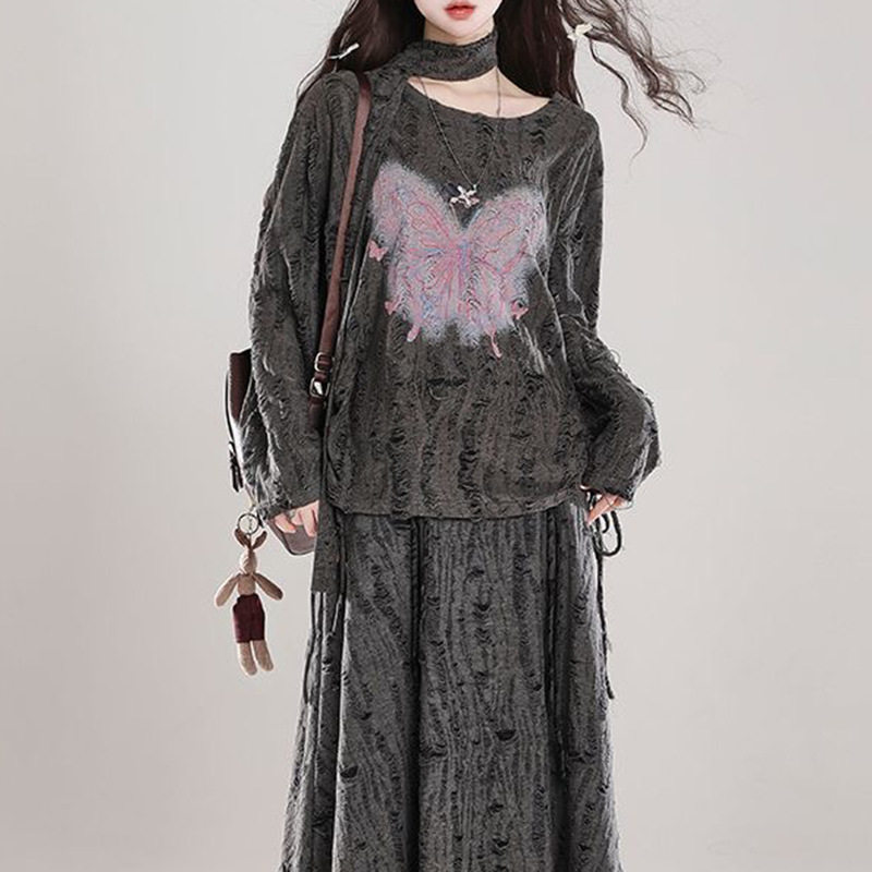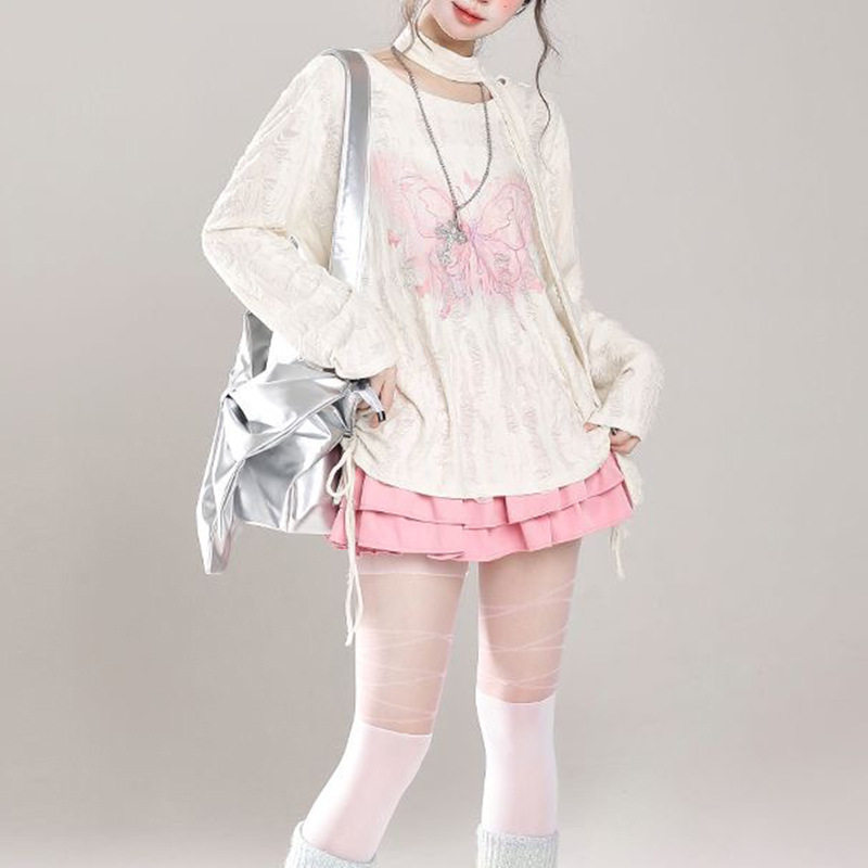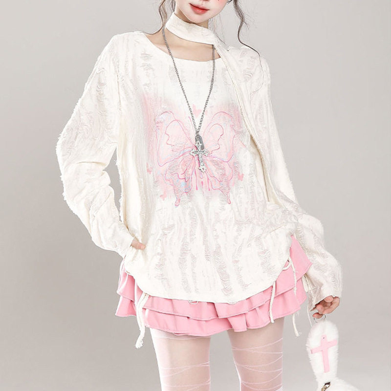 为您提供商品美式 设计感宽松抽绳慵懒辣妹上衣春夏 破洞蝴蝶印花甜酷防晒罩衫的详细介绍,