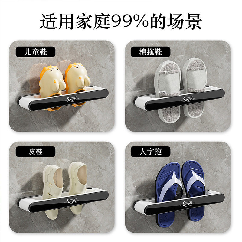 浴室壁挂式 架免打孔卫生间多功能拖鞋 收纳鞋 架 可折叠三合一拖鞋由