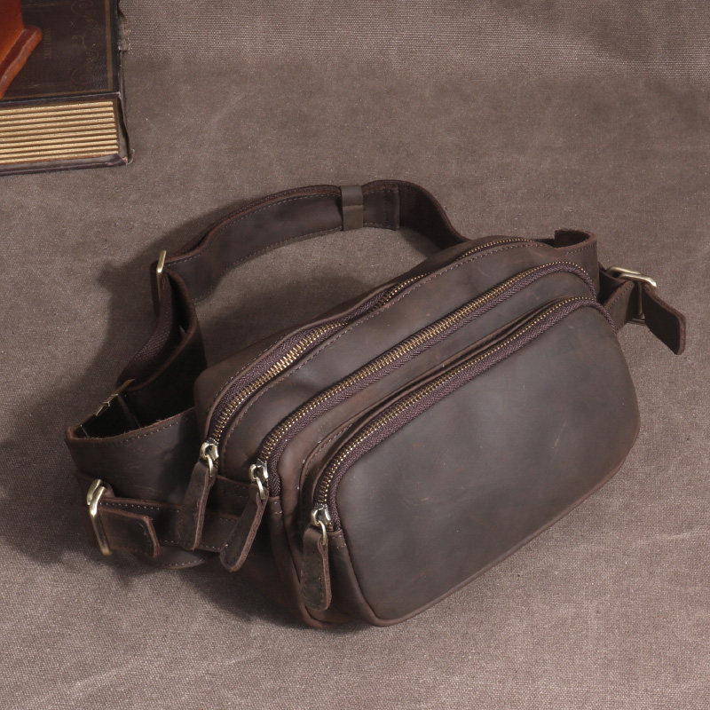 为您提供商品复古斜跨胸包多功能工具手机袋 疯马皮男包真皮腰包男头层牛皮夏季的详细介绍,