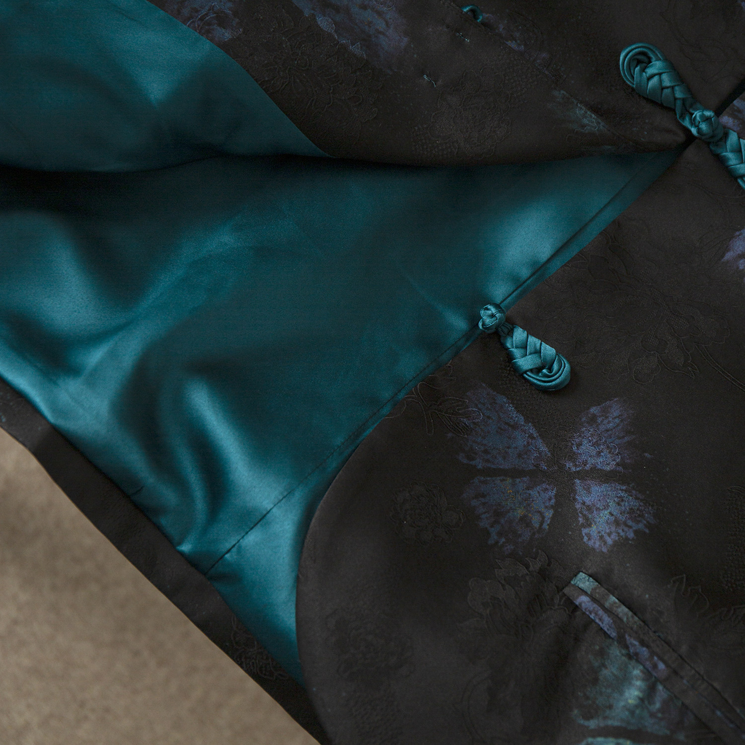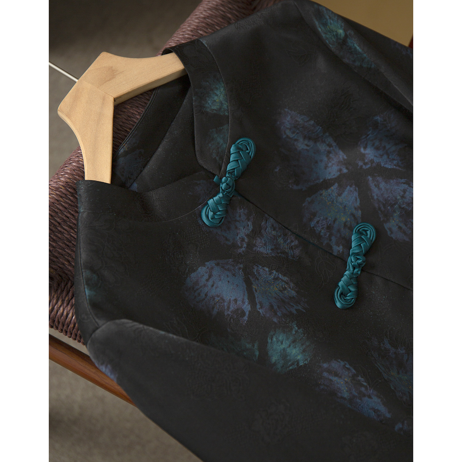 丝艺100%桑蚕丝香云纱花萝新中式 上衣女 蝴蝶图案盘扣真丝外套开衫由