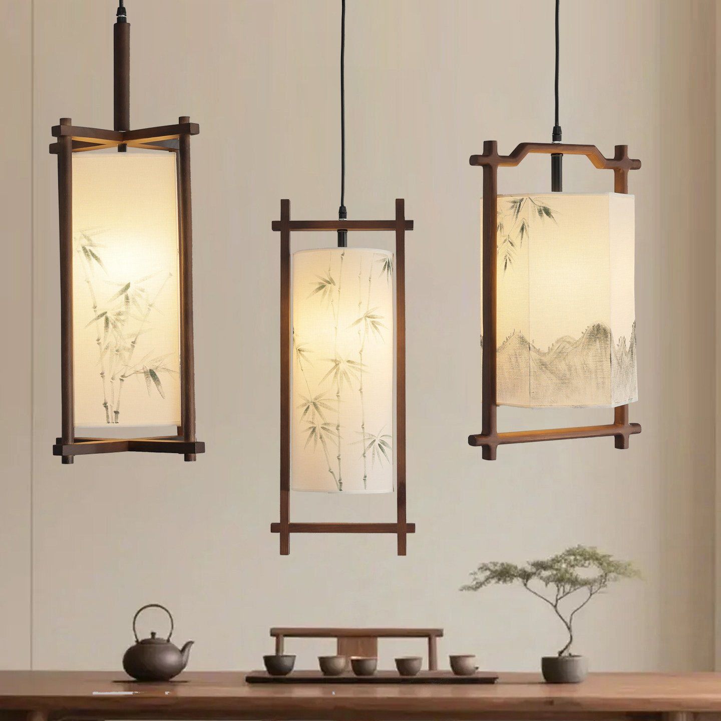 为您提供商品新中式 玄关过道床头吧台中古风灯 宋氏美学木质布艺小吊灯2026新款的详细介绍,