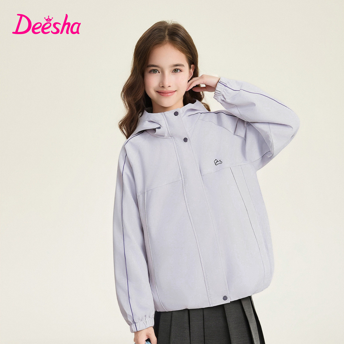 新款 中童女孩儿童洋气休闲连帽外套上衣 女童外套春季 笛莎官方童装由