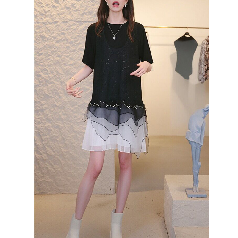 西格圣迪奥时尚 2026夏季 新款 女装 26221403 仙女裙蕾丝拼接T恤套装由