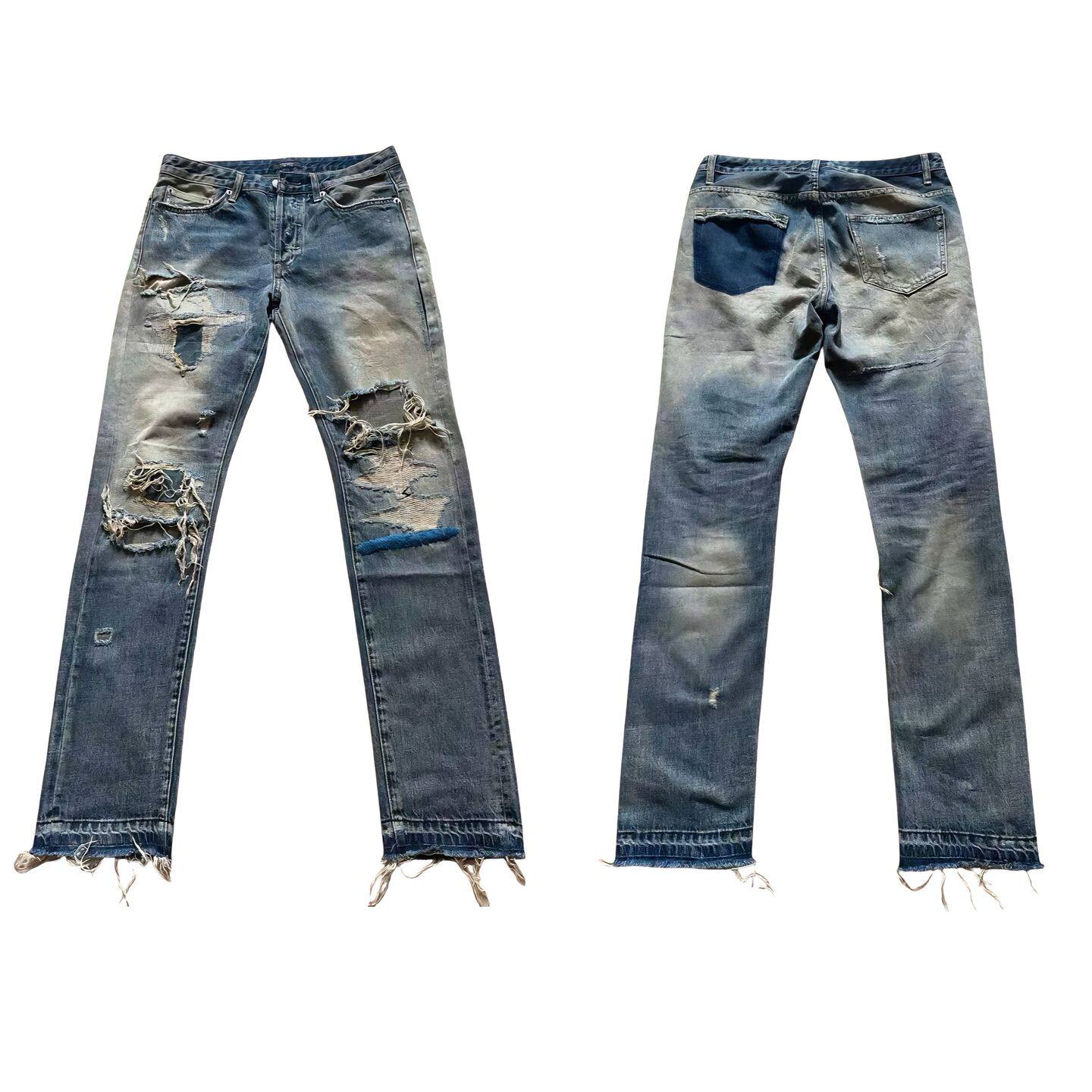 水洗破洞糜烂牛仔裤 68蓝线刺绣 10ss 封神之作 Undercover
