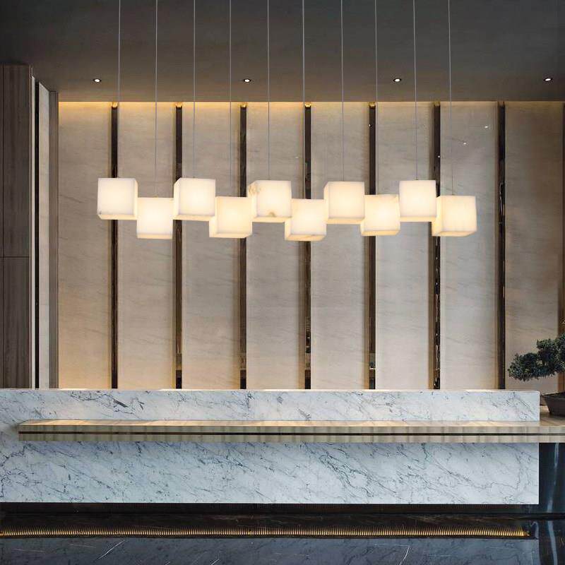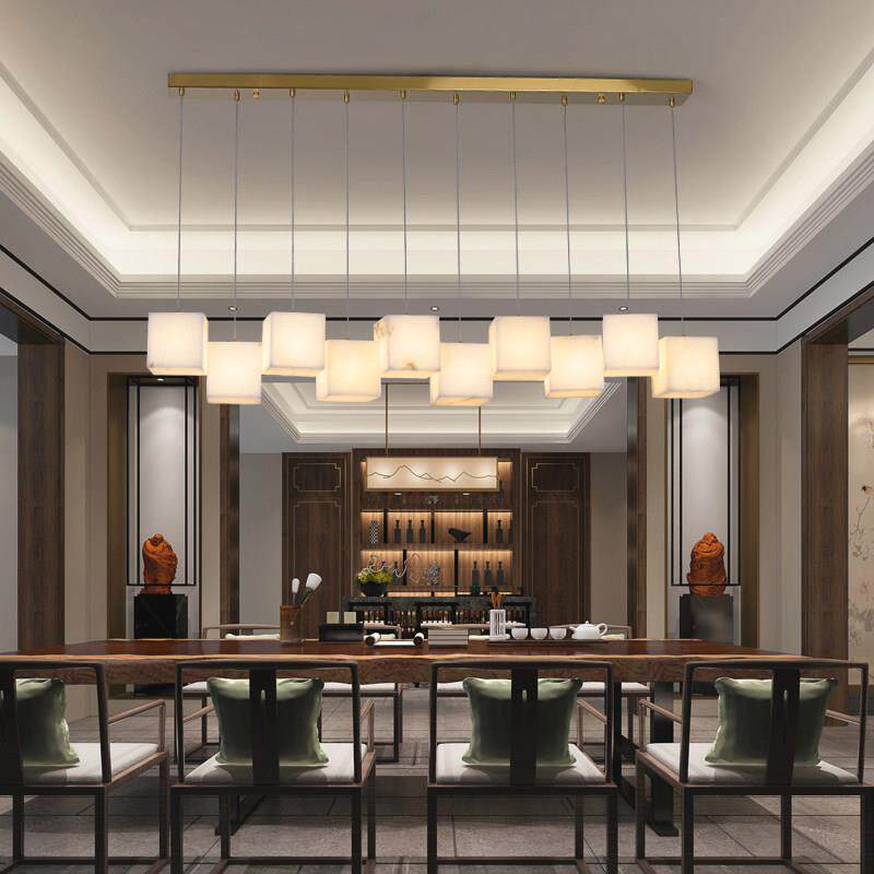 全铜客厅灯设计师工程灯 轻奢云石餐厅吊灯天然西班牙吧台灯新中式