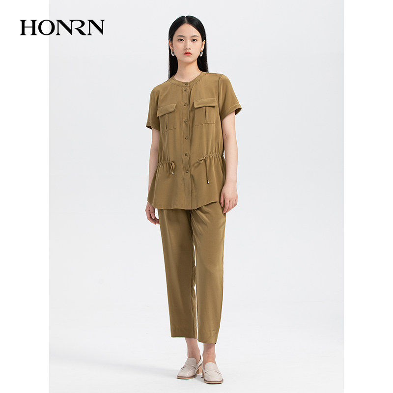 女夏季 HONRN 红人显瘦裤 子桑蚕丝真丝九分休闲裤 HH22OK872 薄款