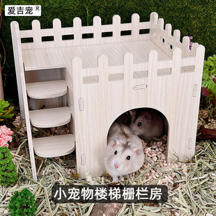 仓鼠躲避屋金丝熊栅栏房蜜袋鼯小房子窝高硬度带楼梯小宠木质城堡由