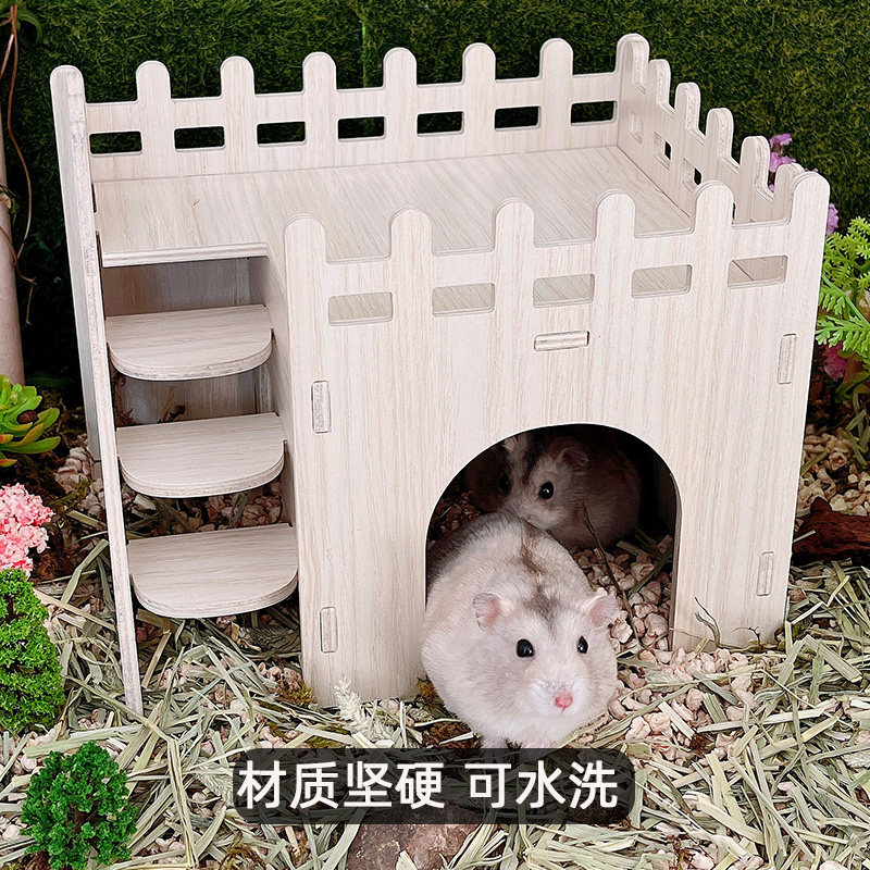 仓鼠躲避屋金丝熊栅栏房蜜袋鼯小房子窝高硬度带楼梯小宠木质城堡