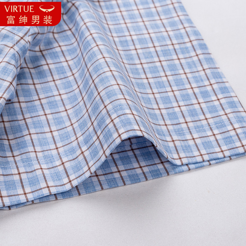 中青年商务休闲纯棉格子衬衣男半袖 富绅短袖 免烫 新款 夏季 衬衫 男士由