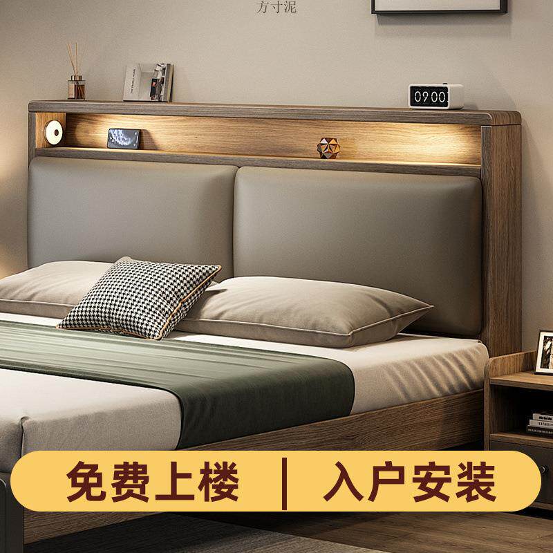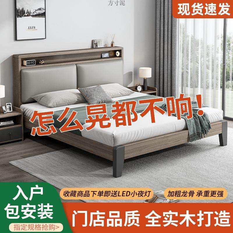床实木双人1LJQ.x2米主卧大床家用8床1.5米小户型出租2房用1.m单