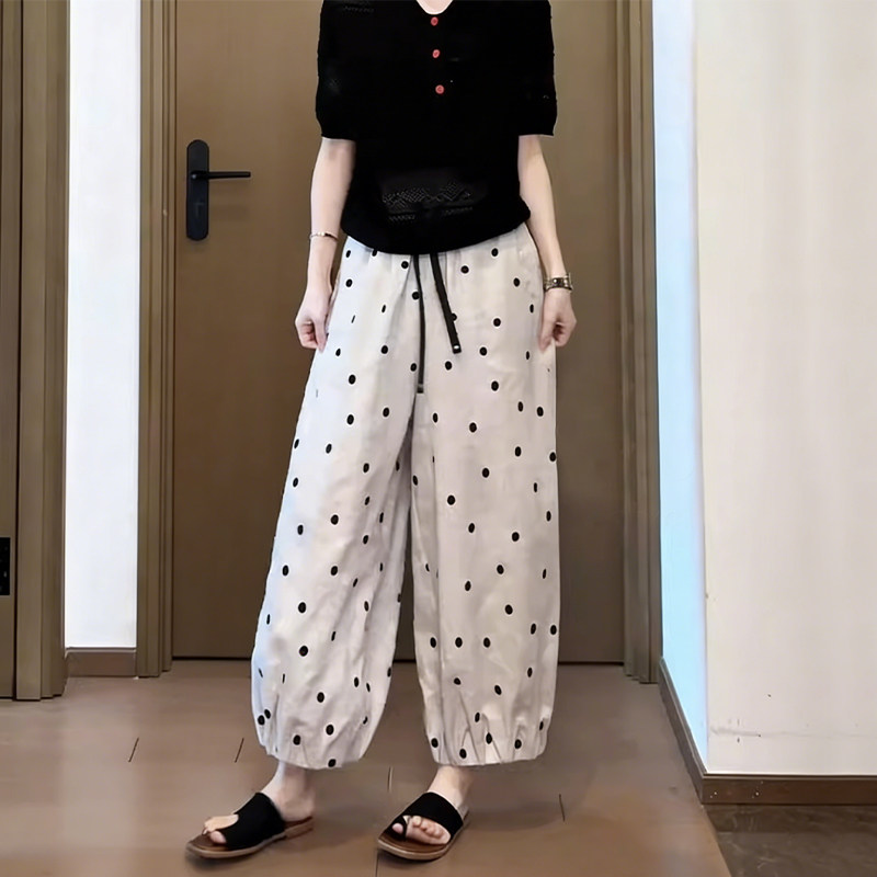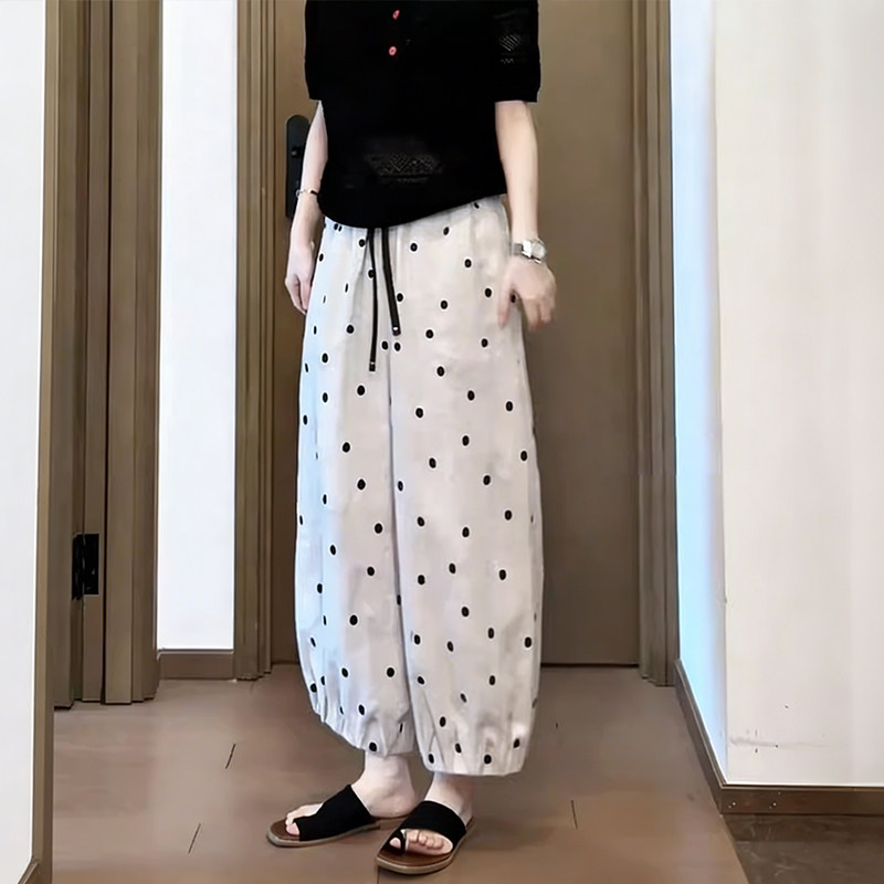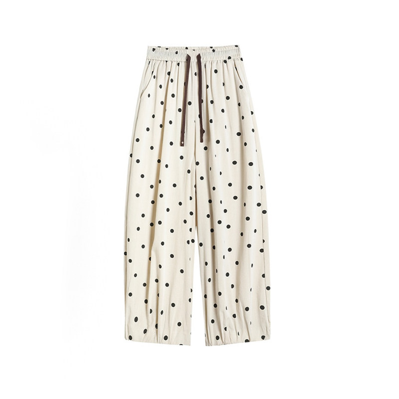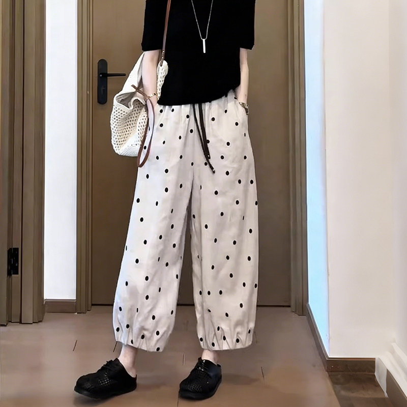 杏色波点哈伦裤 款 矮小个子慵懒百搭宽松休闲九分阔腿灯笼裤 女夏季