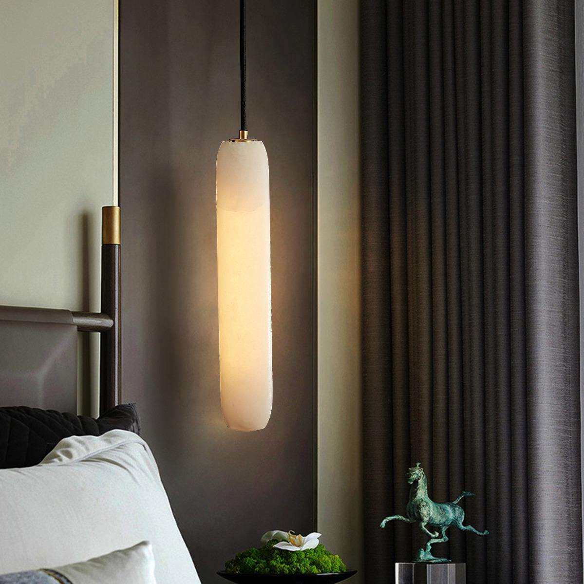 新中式 吧台餐厅吊灯 全铜天然云石轻奢床头小吊灯卧室书房创意个性