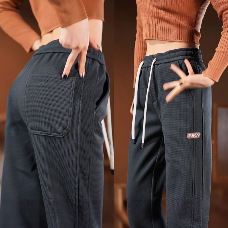 百搭运动裤 华夫格休闲裤 潮流显瘦时尚 2026新款 女春夏季 宽松束脚裤