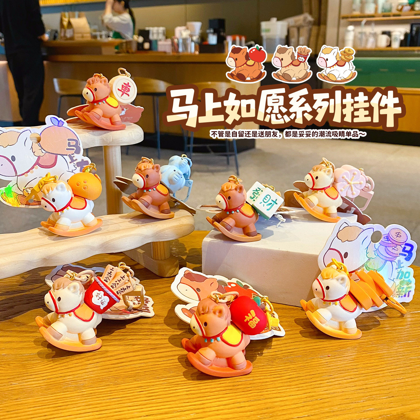 马年马上如愿系列钥匙扣挂件可爱树脂创意对扣马上好运包包挂件女