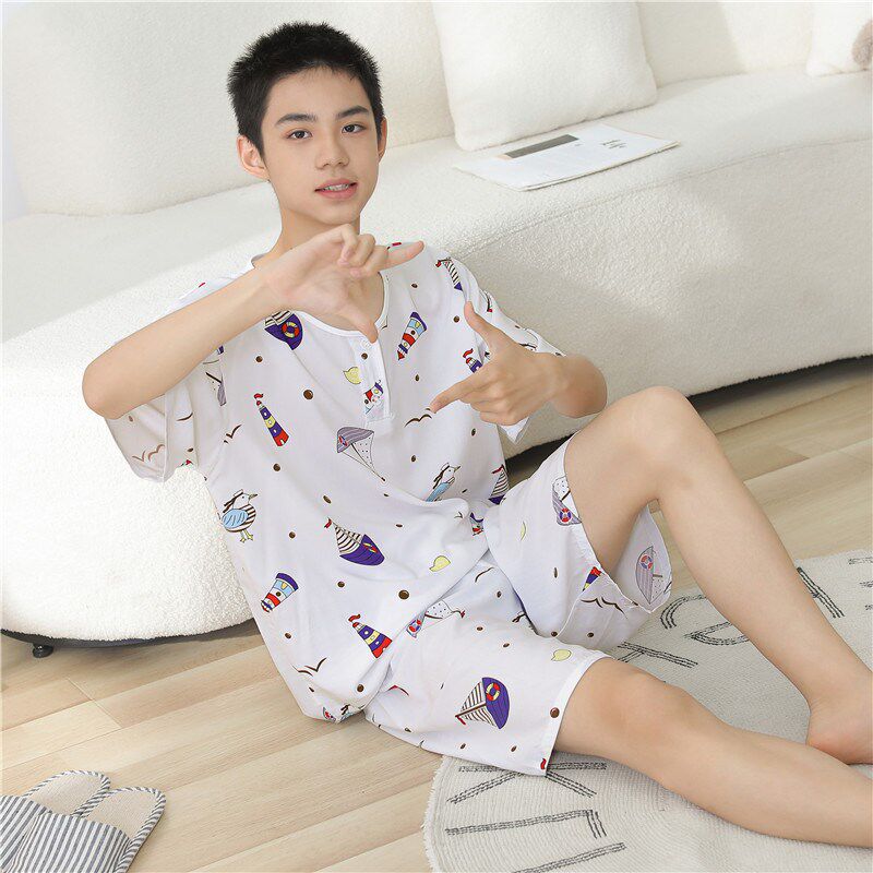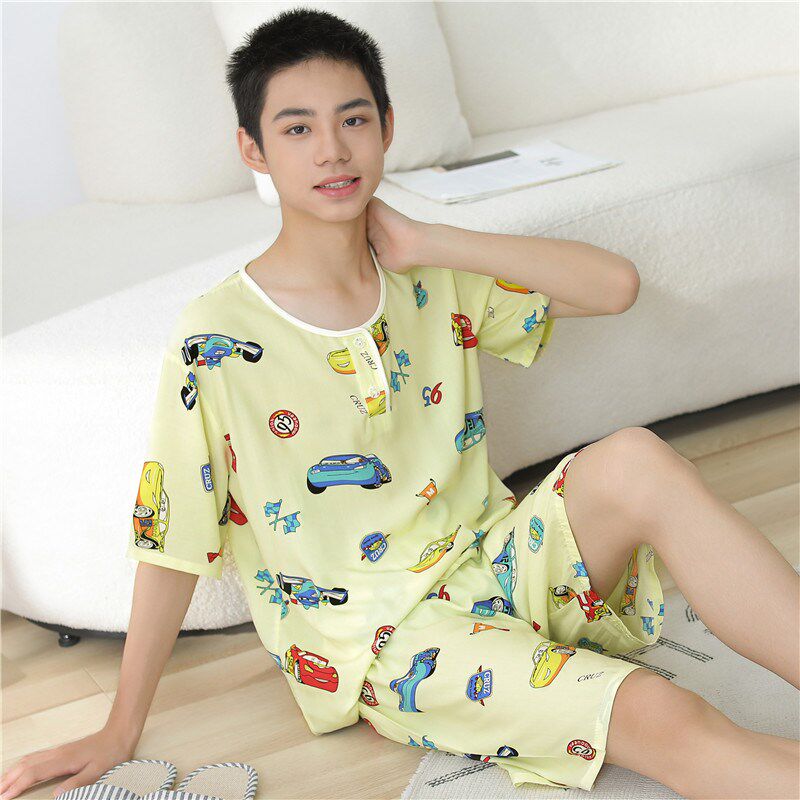 绵绸薄M款 夏季 青少年初中学生家居 短裤 短袖 青年男士 棉绸睡衣套装由