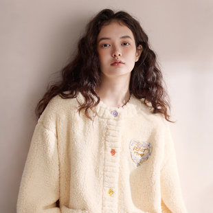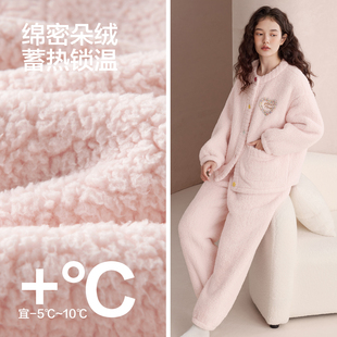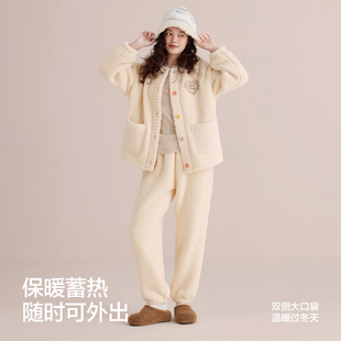 可外穿珊瑚绒家居服女抗静电冬季 开衫 红豆居家女士羊羔绒睡衣套装由