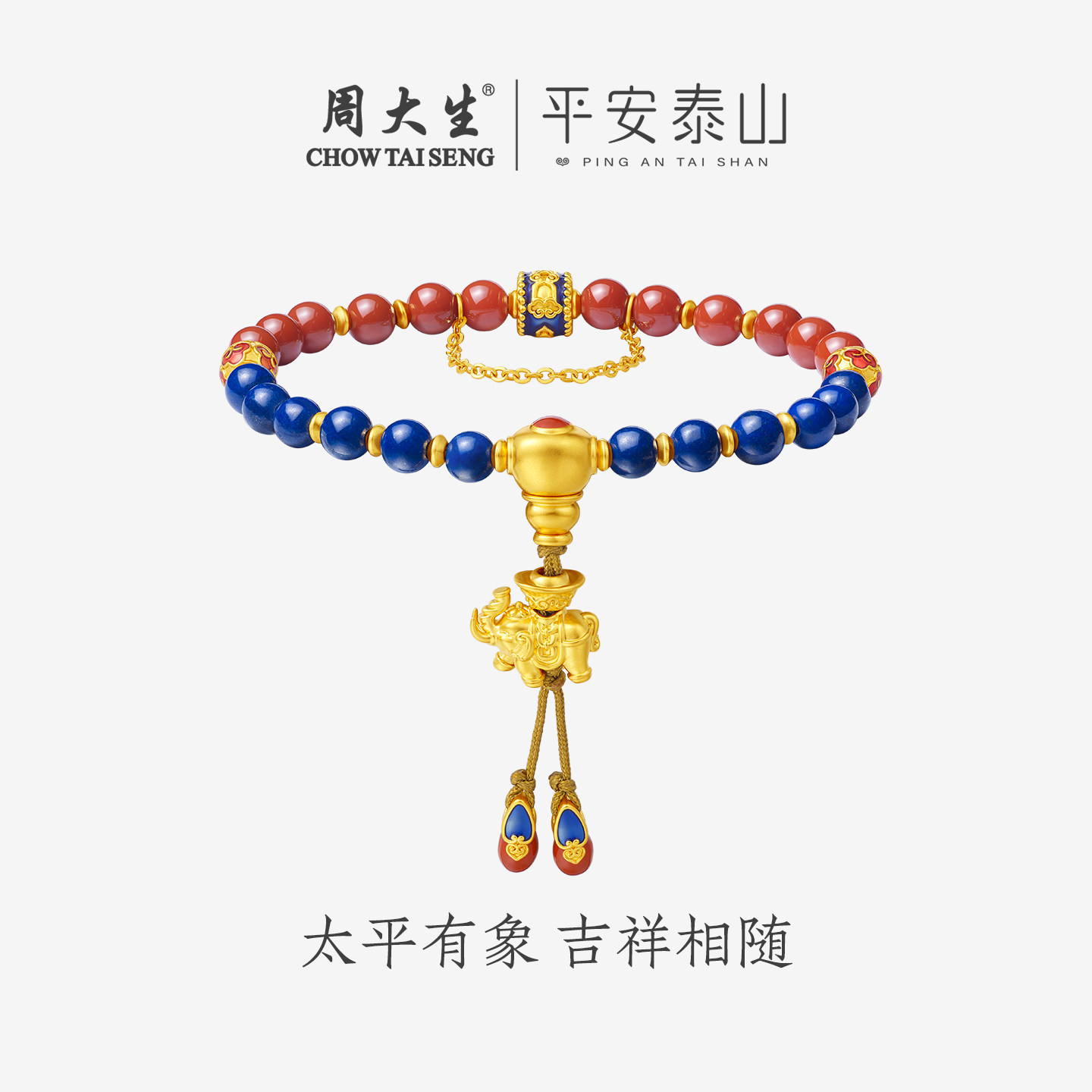 玛瑙手链生日礼物 周大生腕美平安泰山大象黄金青金石手串情侣款