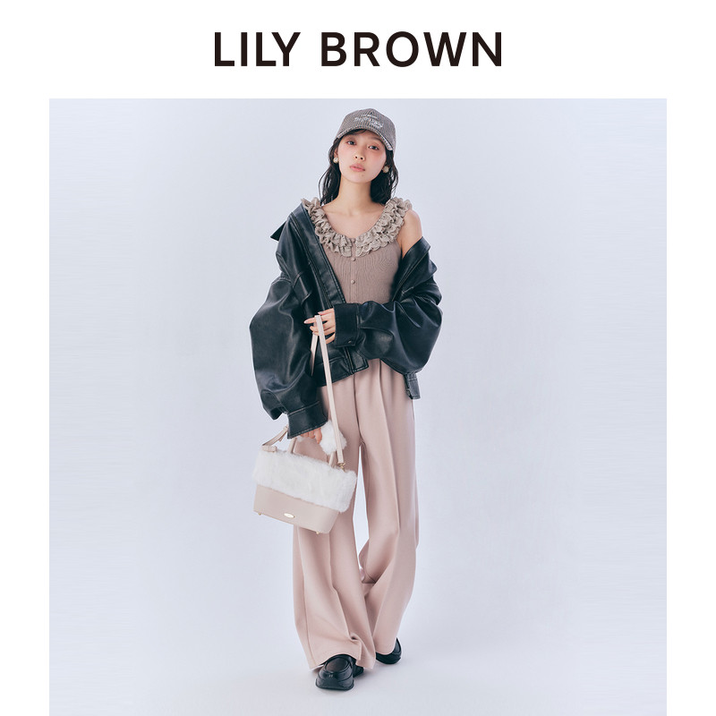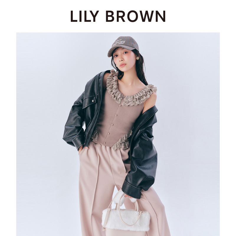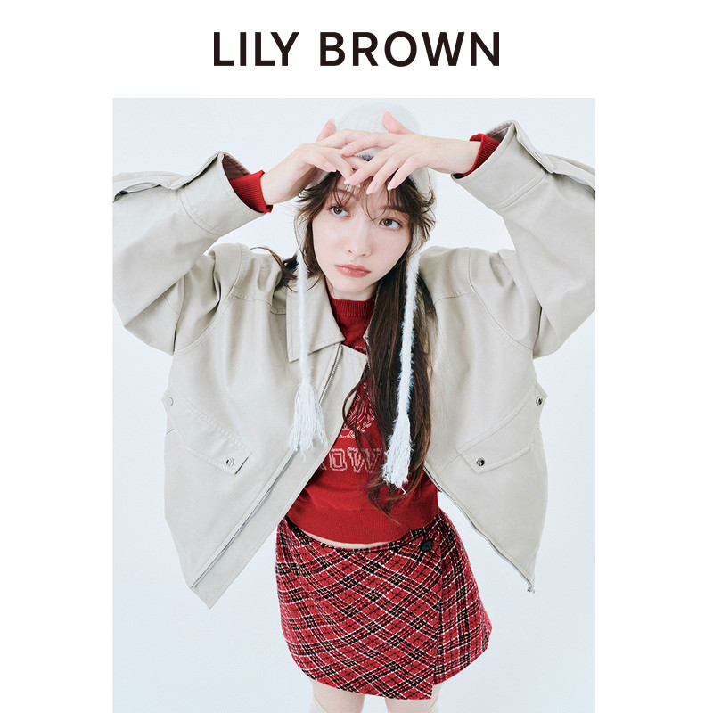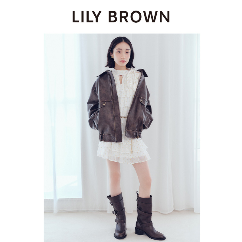 LILY 复古拉链落肩仿皮革夹克外套LWFJ254066 BROWN秋冬款