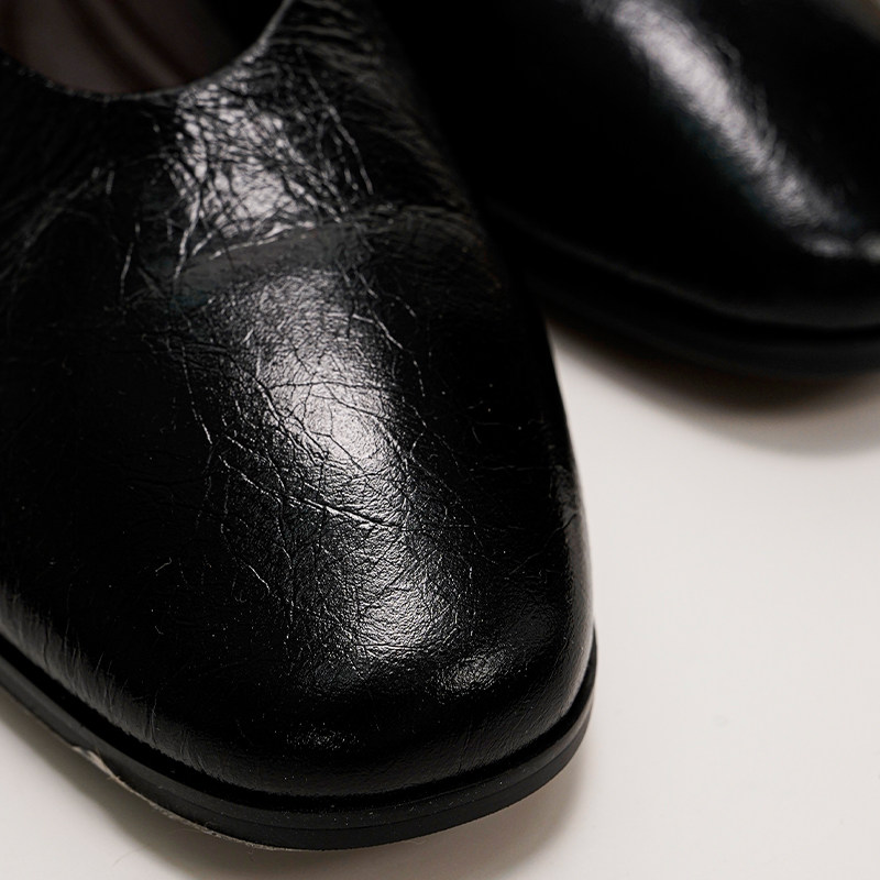 2026春新款 真皮 骄屿法式 复古波点玛丽珍鞋 黑色通勤浅口芭蕾单鞋