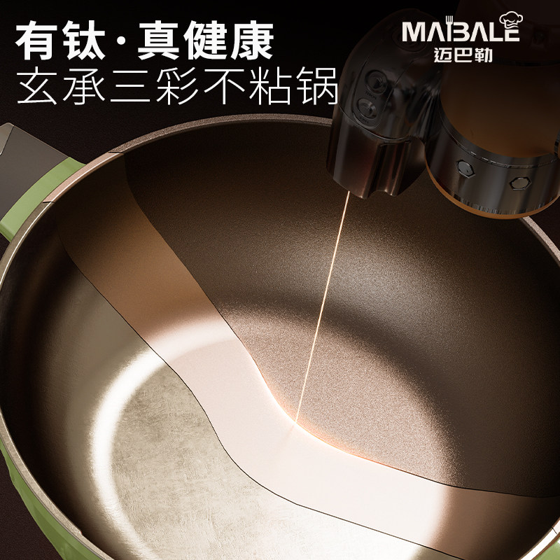 炒锅炒菜家用燃气电磁炉通用 迈巴勒玄承三彩新臻钛不粘锅官方正品由
