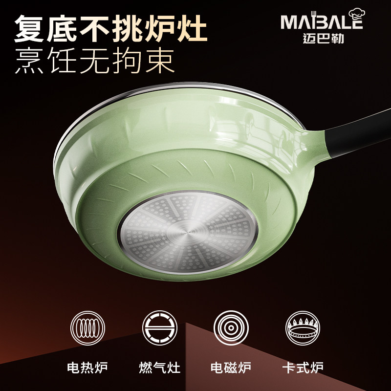 炒锅炒菜家用燃气电磁炉通用 迈巴勒玄承三彩新臻钛不粘锅官方正品