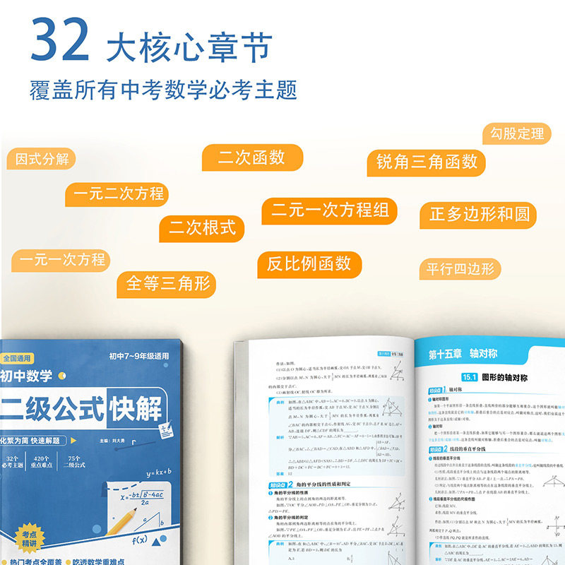 几何辅助线快解 420个重点知识 75个高效二级公式 快解 几何专项32个必考主题 初中数学二级公式 详细解析 高频考法 初中通用