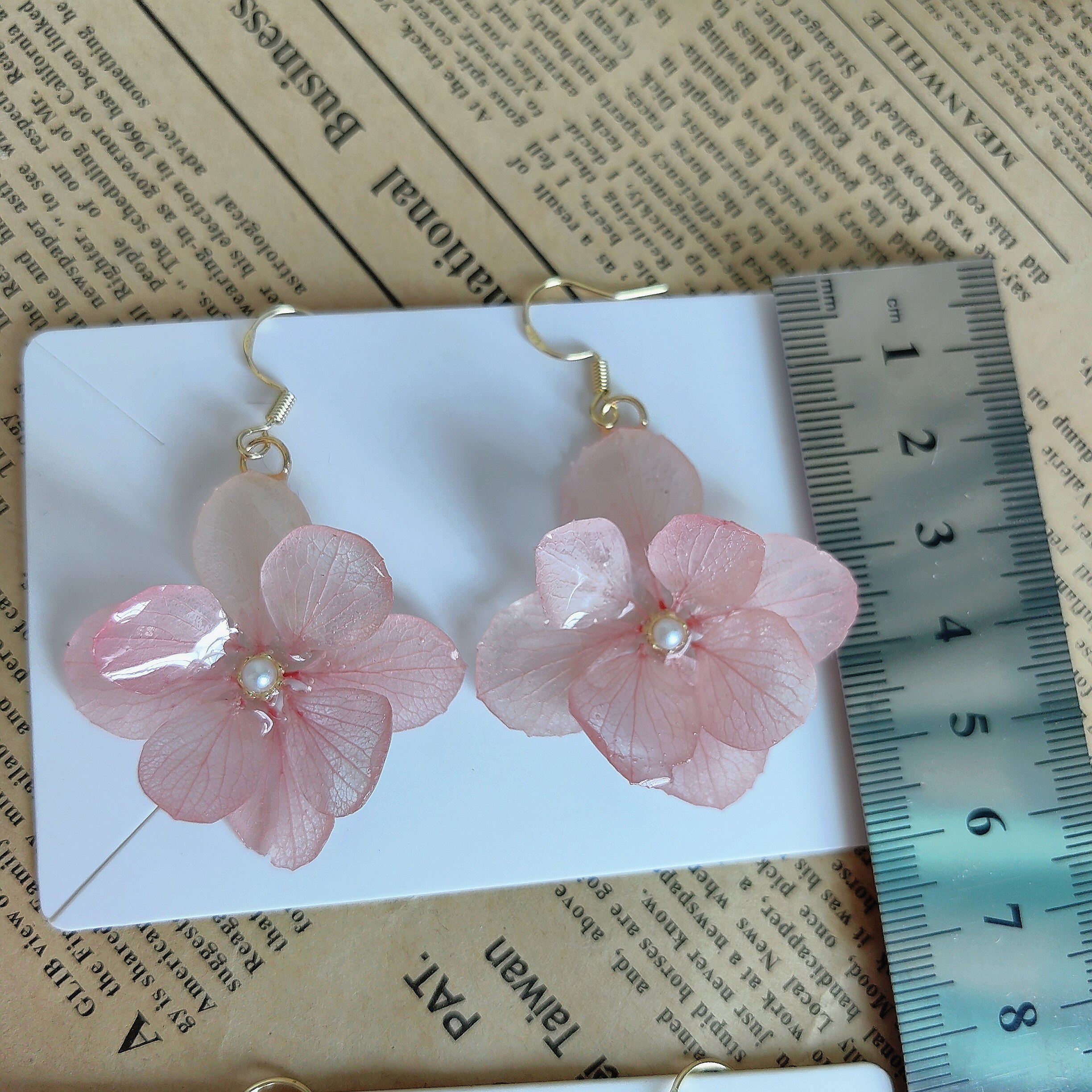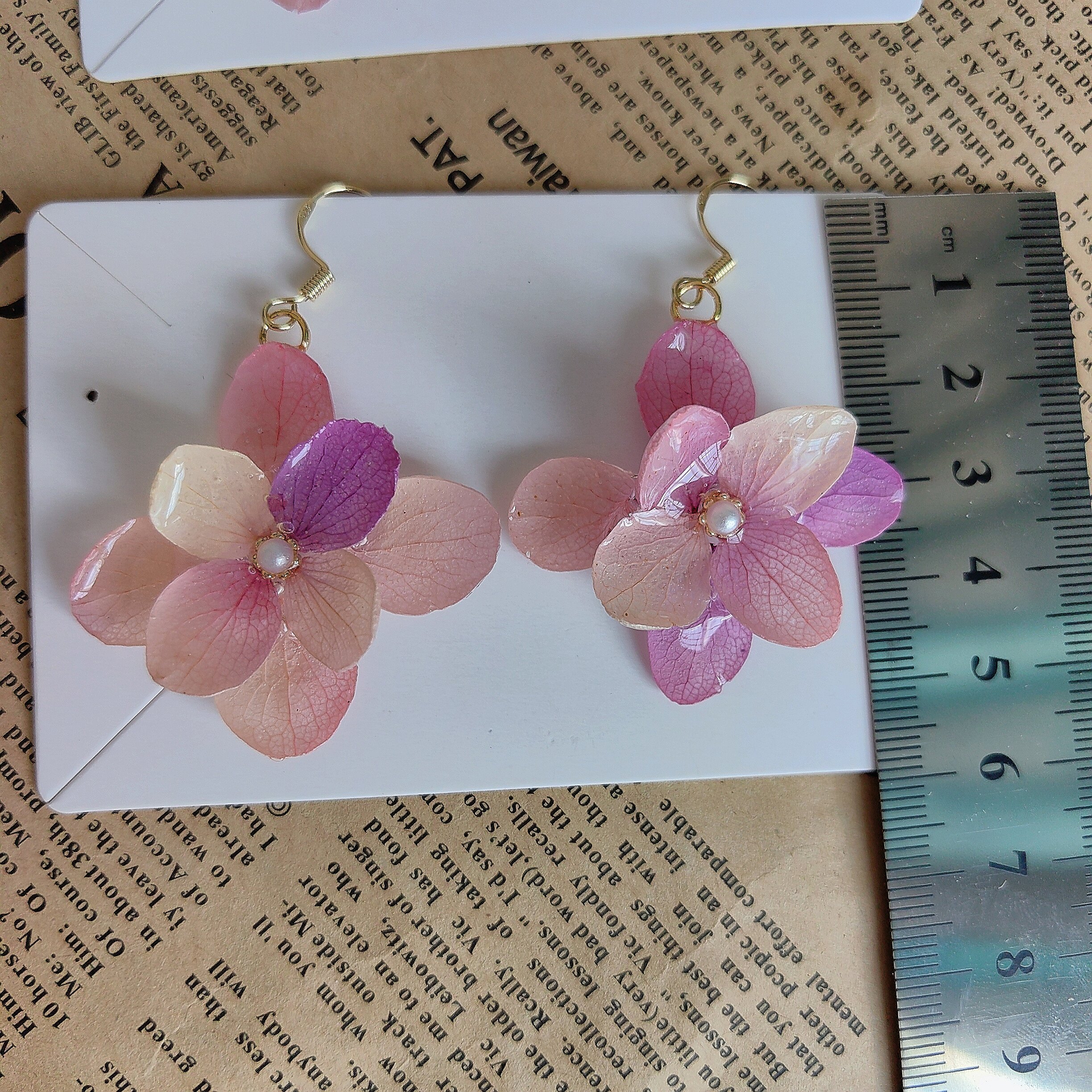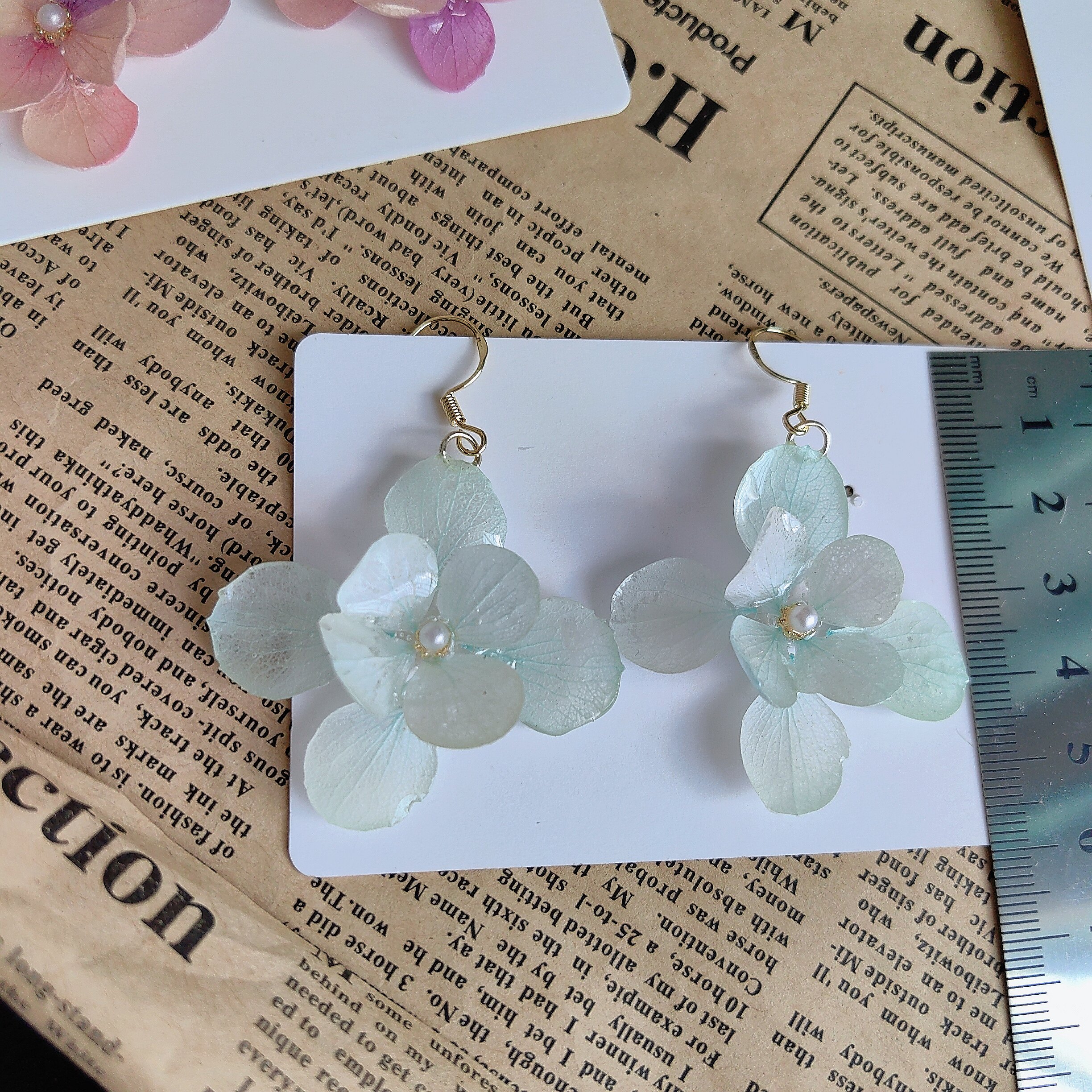 真花耳环 原创手作干花真花滴胶耳环亚特兰蒂斯绣球花小众森系法式由