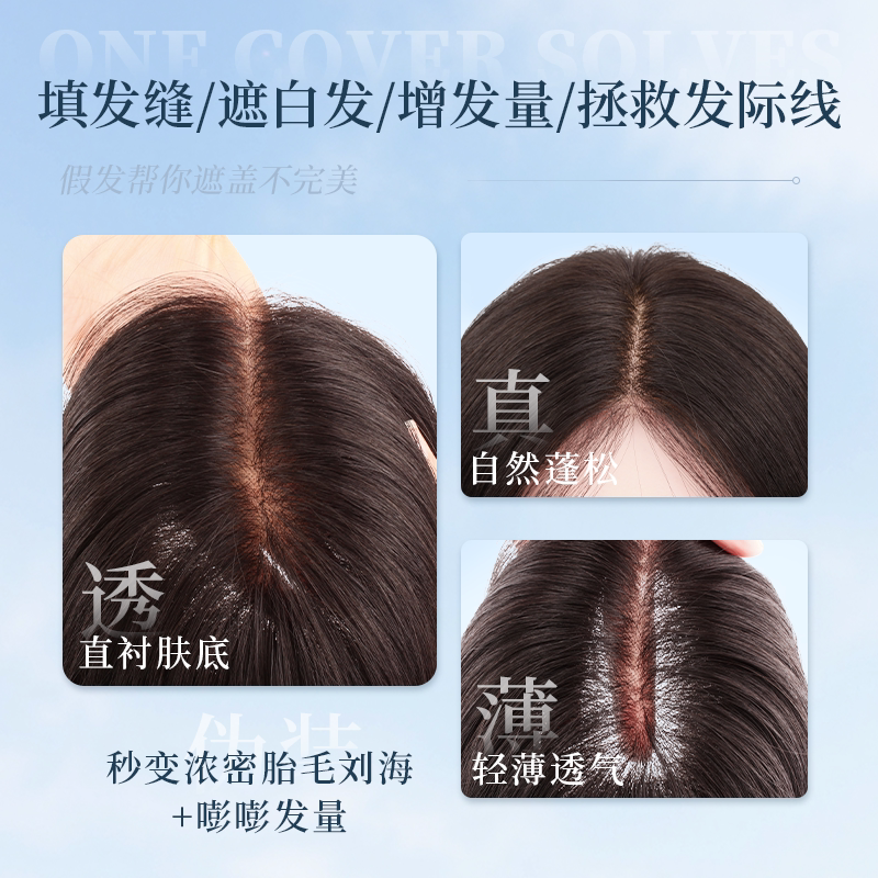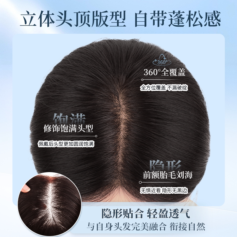 隐形发片 琪姐假发片头顶轻薄透气蓬松增发量遮白发全真发 新品