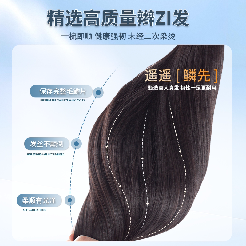 全真人头顶直发片垫发根高颅顶隐形无痕真发神器 瑞贝卡假发一片式