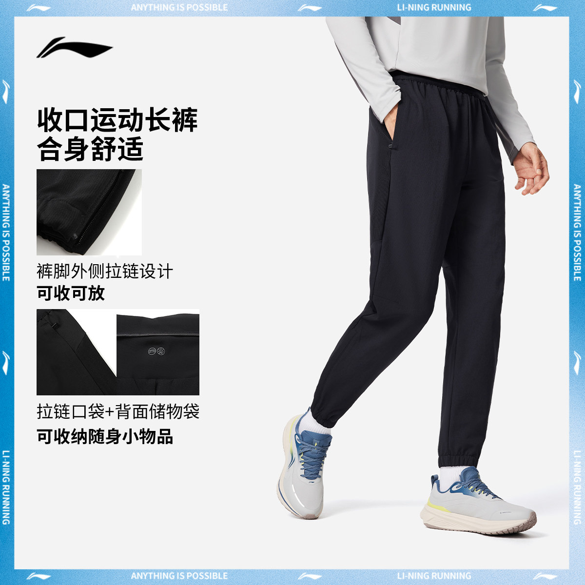 为您提供商品反光束脚梭织运动裤 李宁运动长裤 子春季 跑步弹力裤 男士 黑色新款的详细介绍,