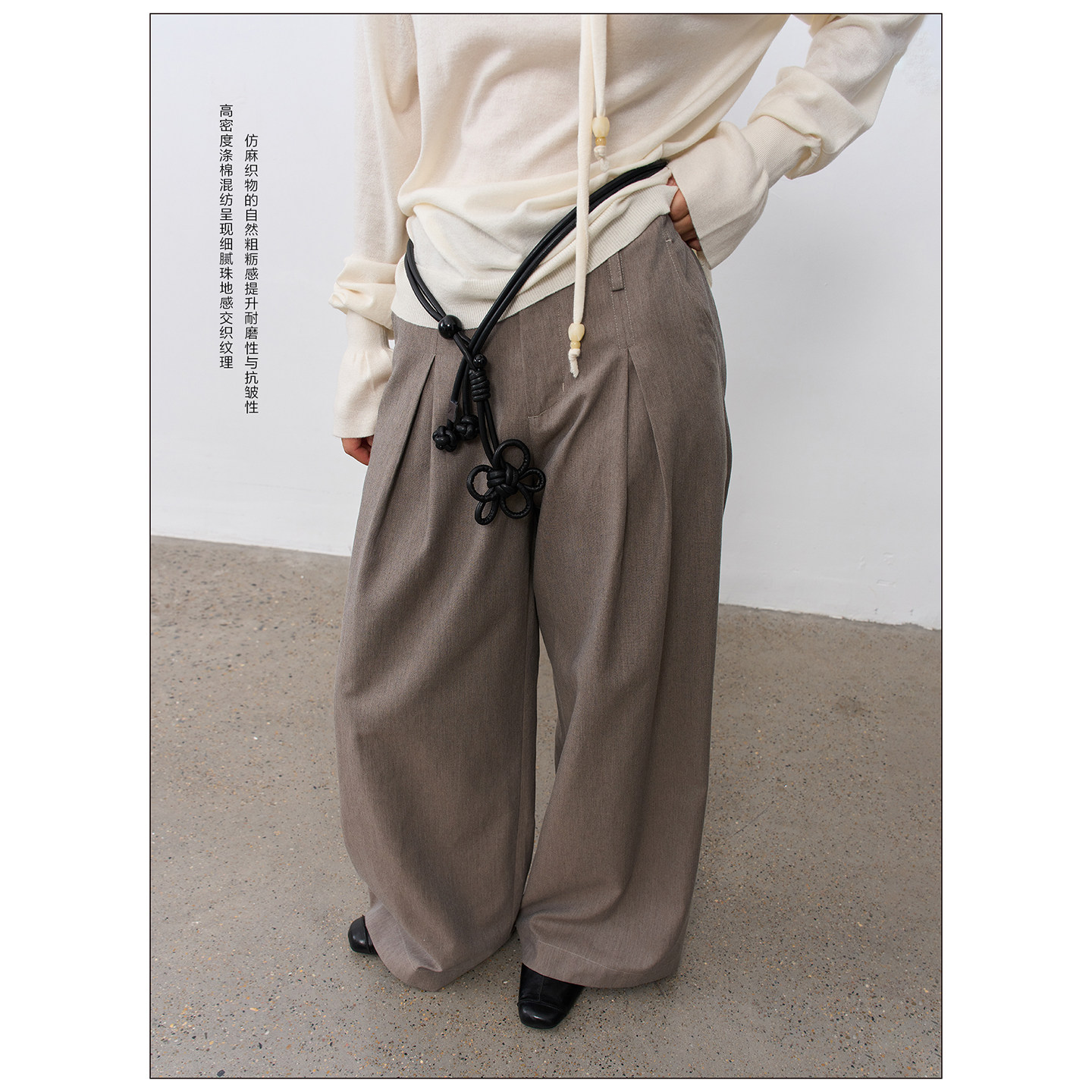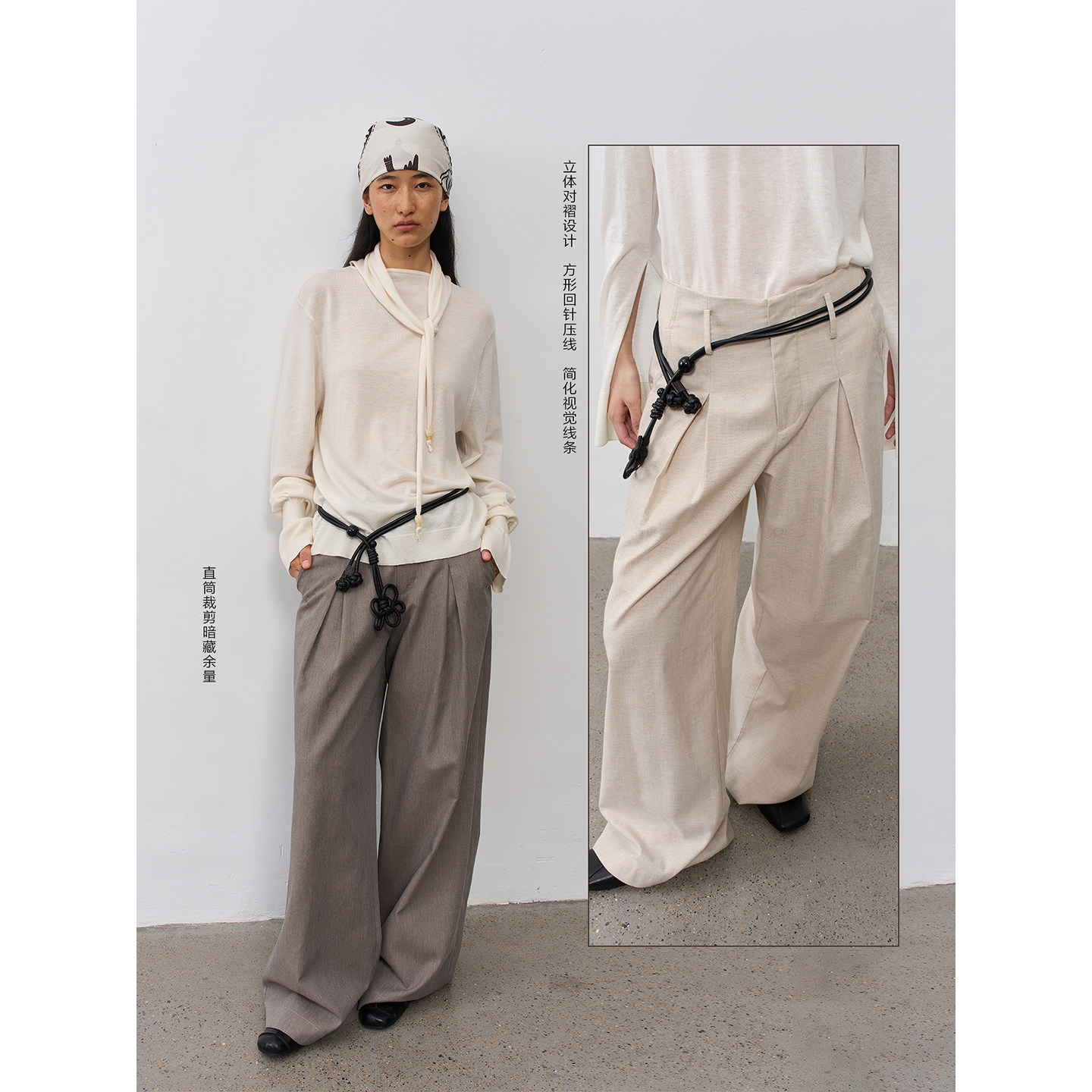 阔腿连腰对褶仿麻直筒裤 BALIANG「捌樑」柯 stem 极简式 休闲长裤