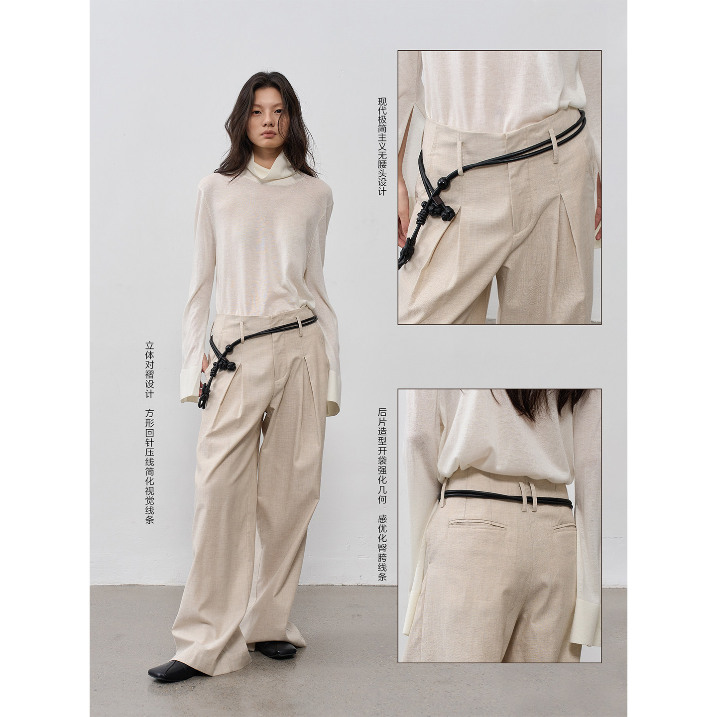 为您提供商品阔腿连腰对褶仿麻直筒裤 BALIANG「捌樑」柯 stem 极简式 休闲长裤的详细介绍,