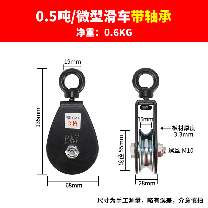 国标轴承起重滑车钢丝绳定动滑轮组钢轮吊钩吊环微型手动省力吊运