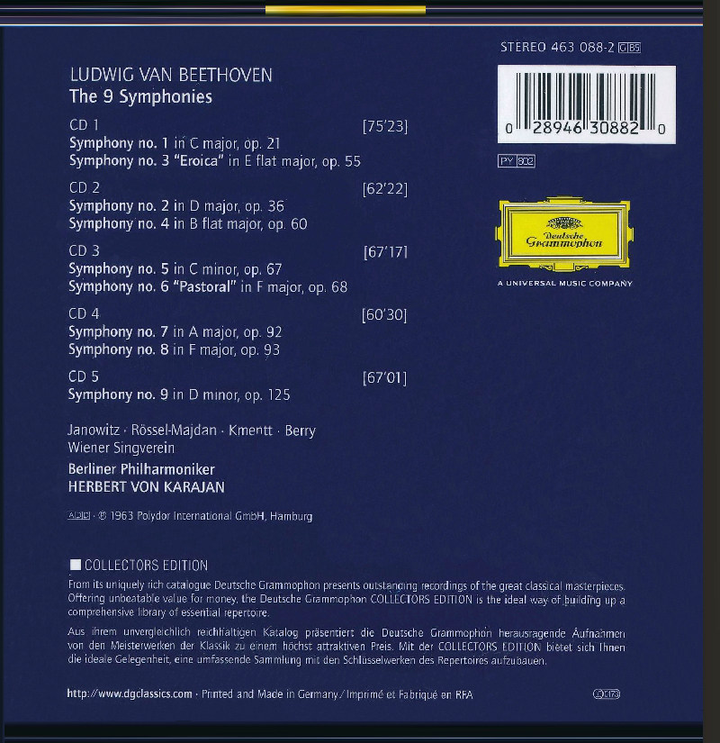 环球DG 4630882 5CD 卡拉扬 中图音像 贝多芬交响曲全集由