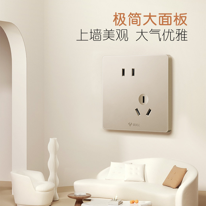 公牛开关插座暗装 厨房客厅卧室插座G12星辰金 86型五孔10A面板暗装