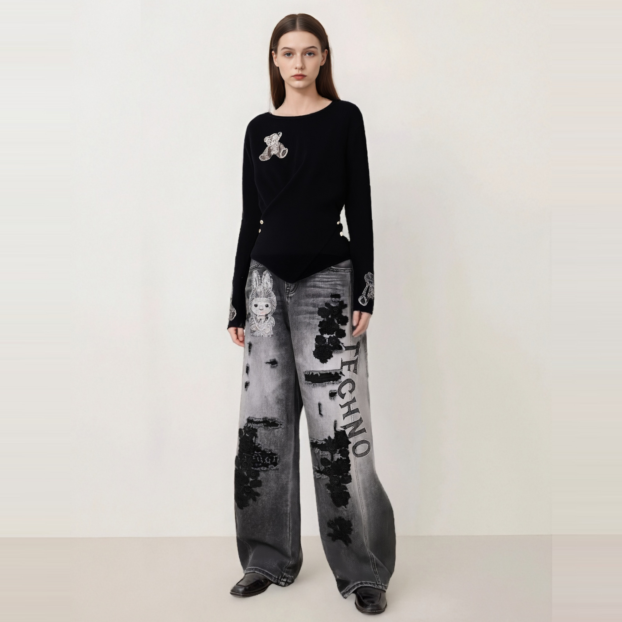 为您提供商品秋夏新款 T72C09E5094 百搭烫钻小熊收腰针织衫 TCH潮牌时尚的详细介绍,