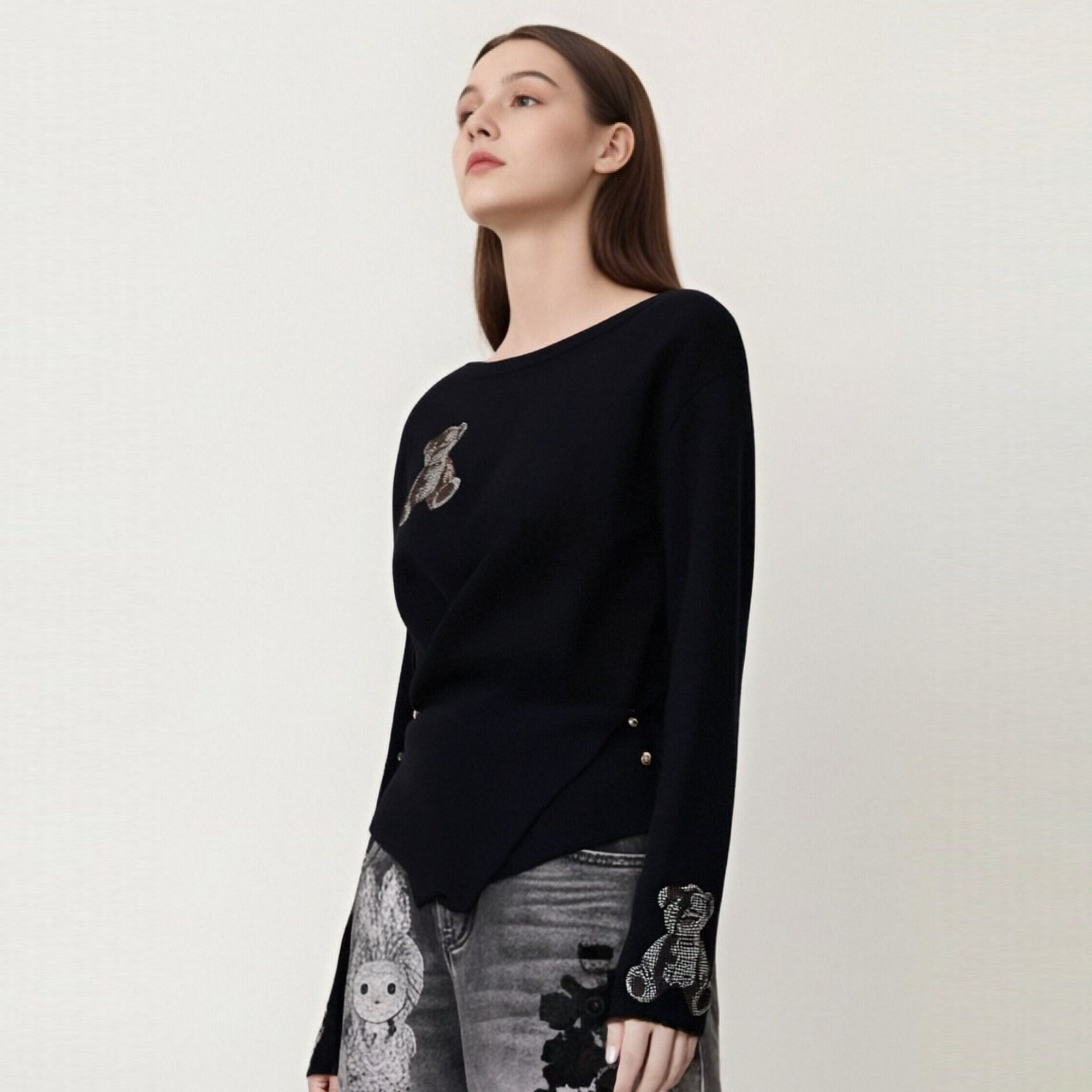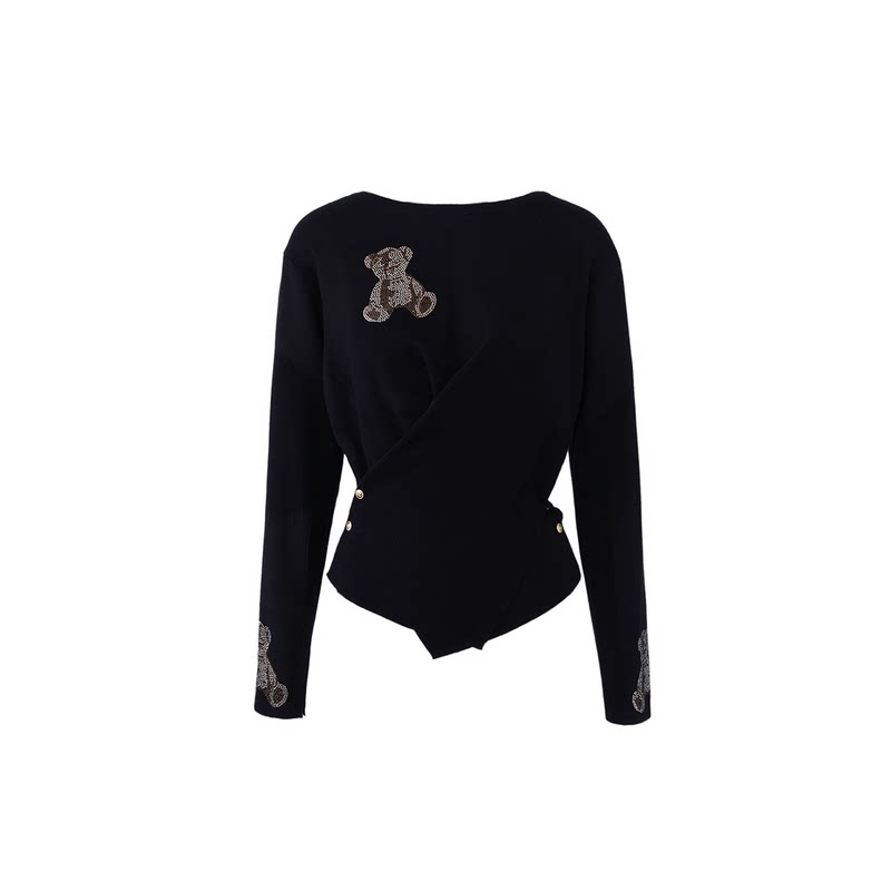 秋夏新款 T72C09E5094 百搭烫钻小熊收腰针织衫 TCH潮牌时尚由