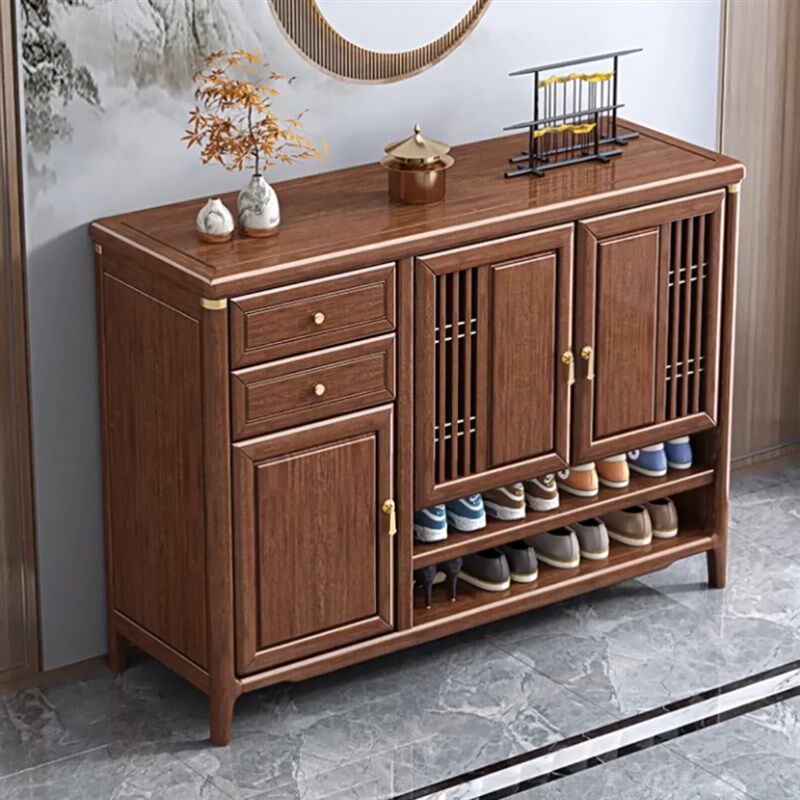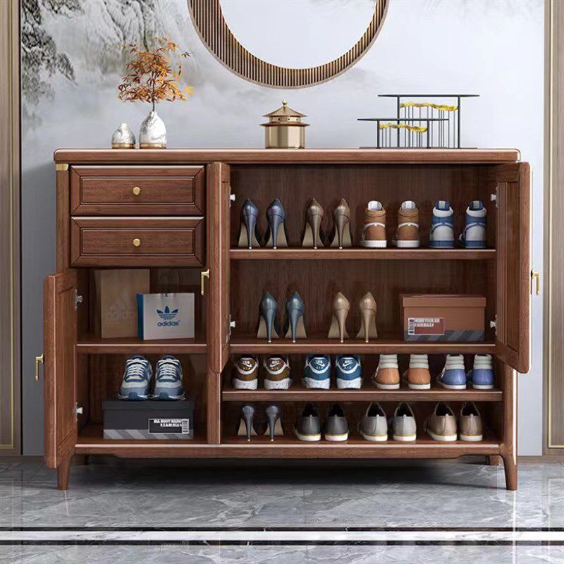 极速实木入户鞋 架储物收纳柜 柜胡桃木入门玄关柜家用门口进门鞋