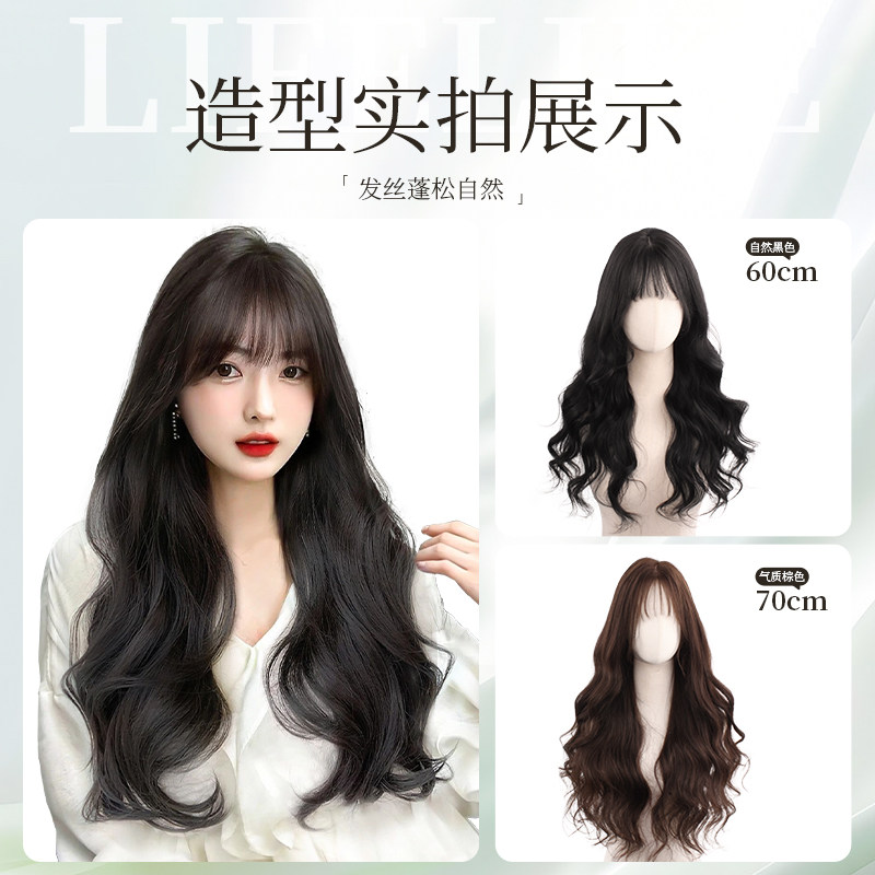 为您提供商品英琪假发女长发封边递针空气刘海长卷发大波浪自然全真人发全头套的详细介绍,