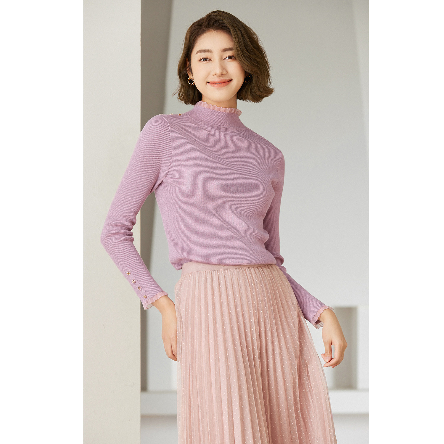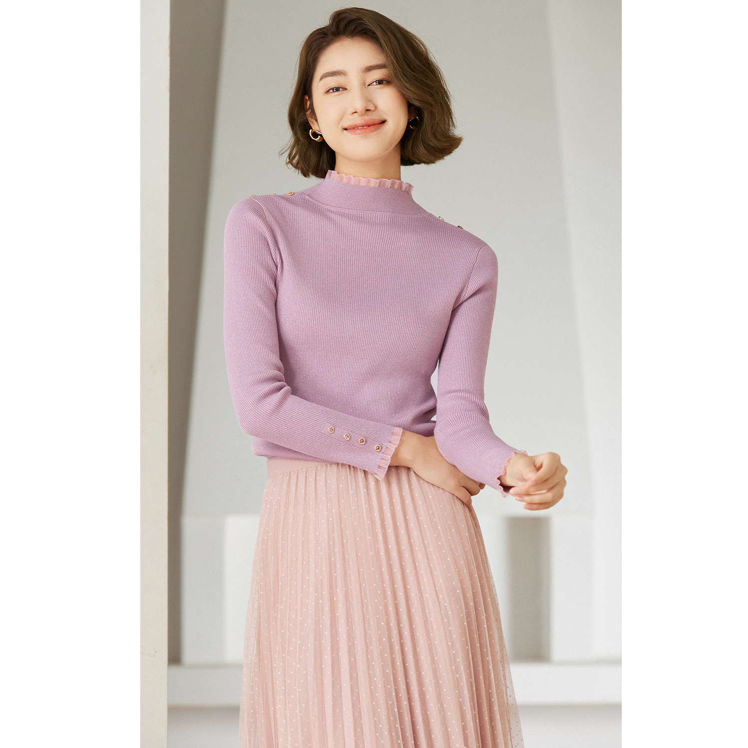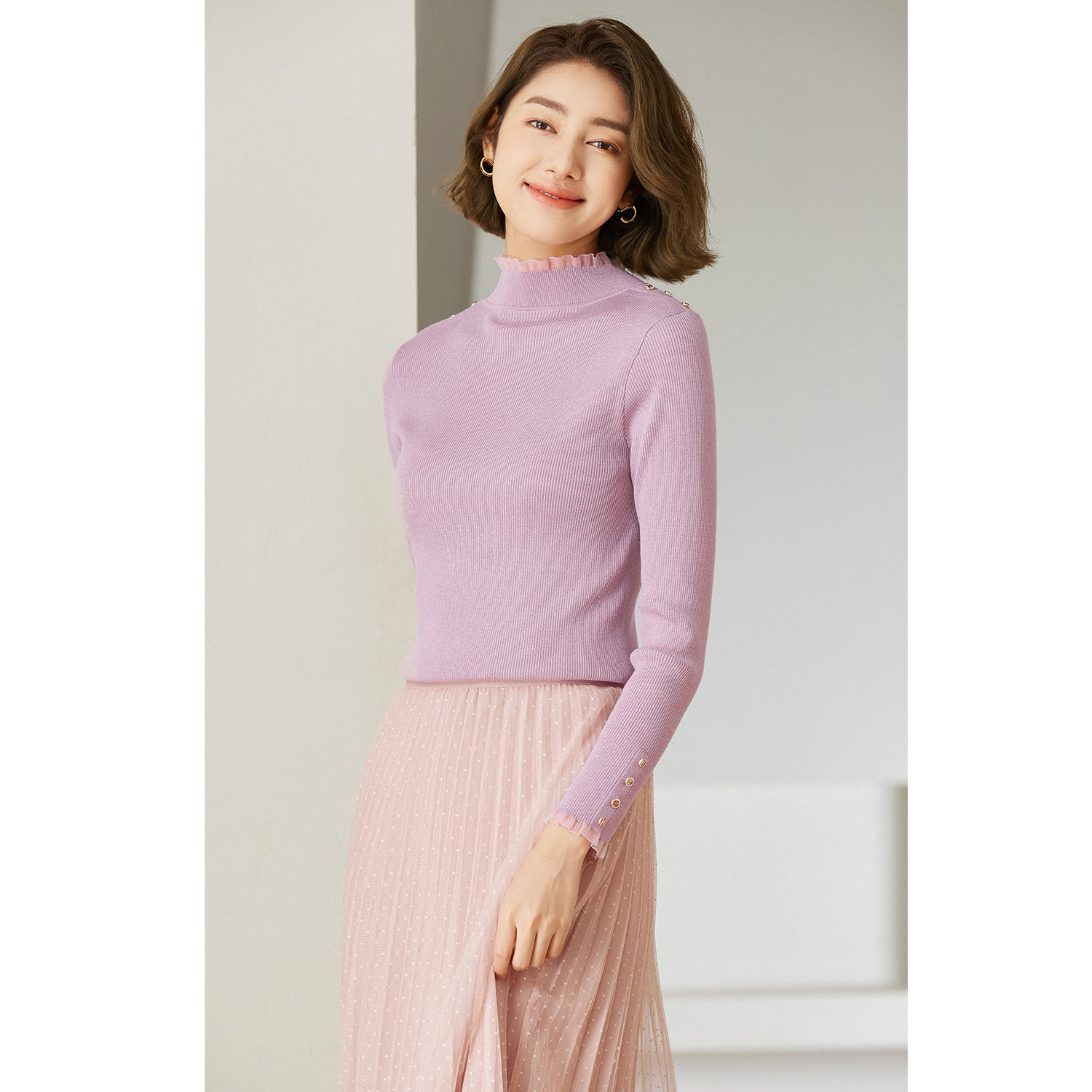 首降 乔万尼绵羊毛针织衫 木耳边半高领打底EM4M695 2025冬款由