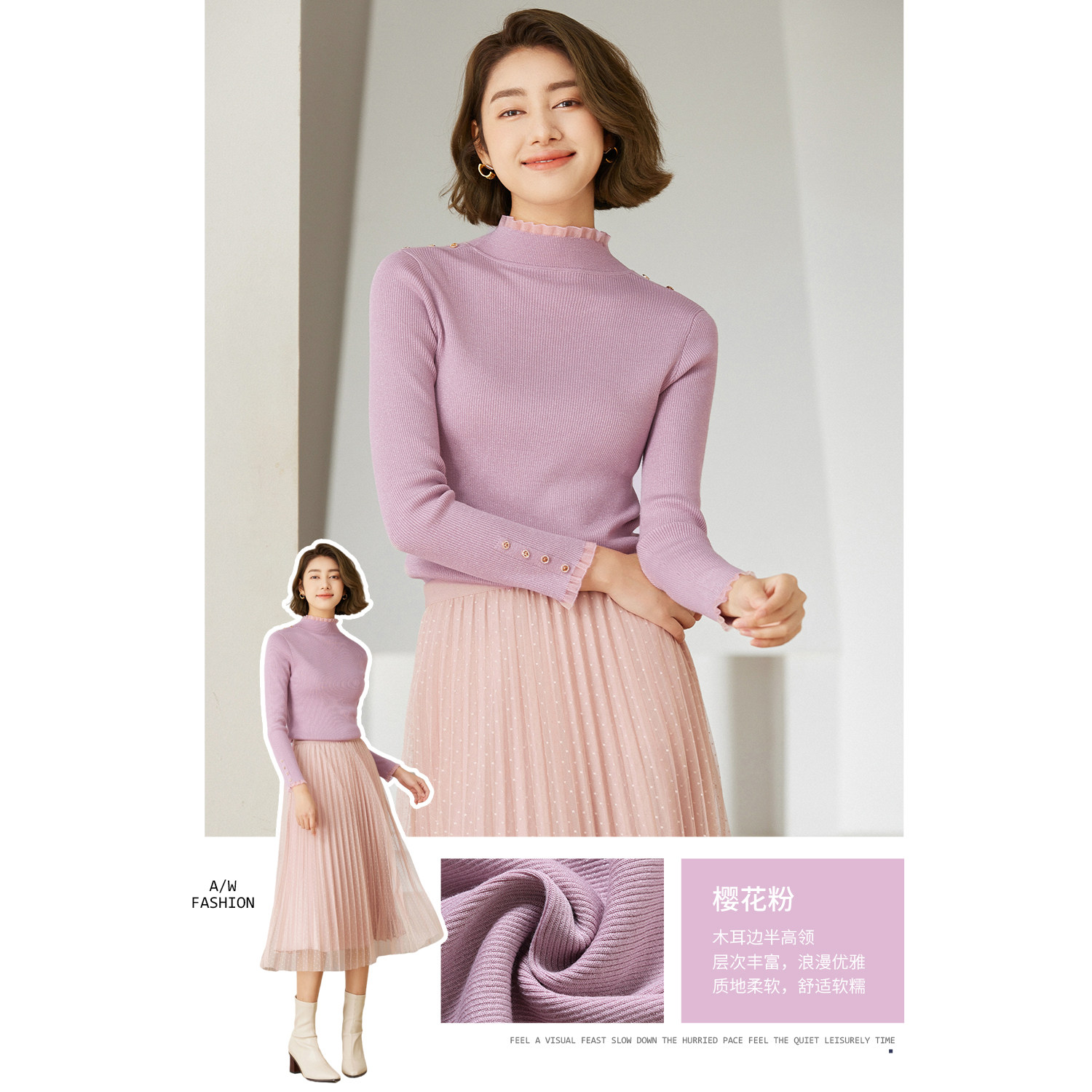 为您提供商品首降 乔万尼绵羊毛针织衫 木耳边半高领打底EM4M695 2025冬款的详细介绍,