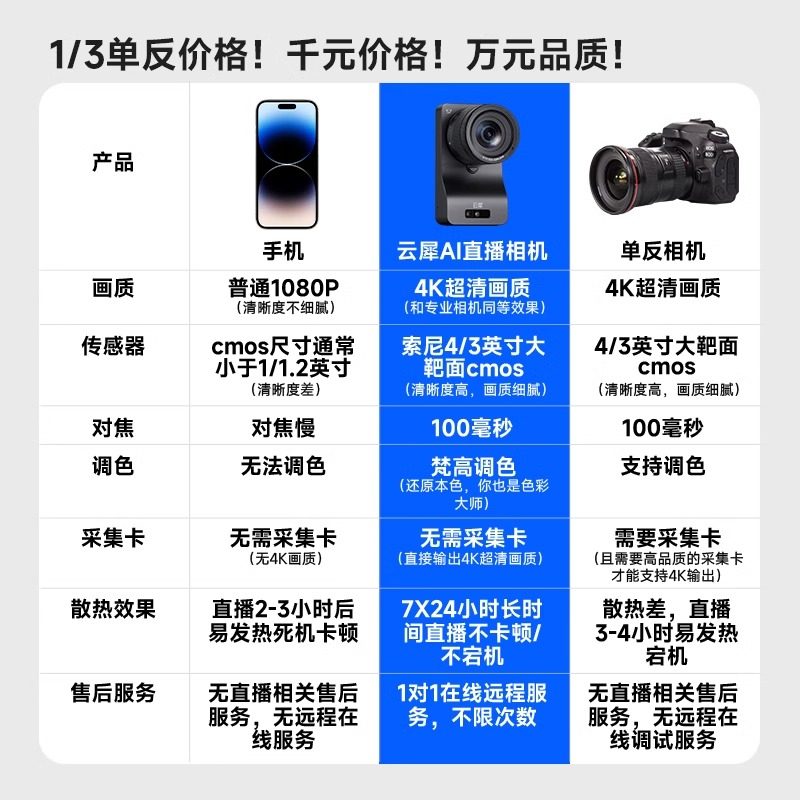 为您提供商品云犀S7专业高清直播相机带货娱乐全套设备单反相机电脑直播专用的详细介绍,