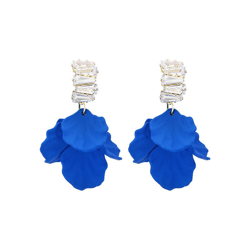 克莱因蓝色贝壳花瓣锆石耳环 复古夸张超显白无耳洞耳夹 ACC MOON