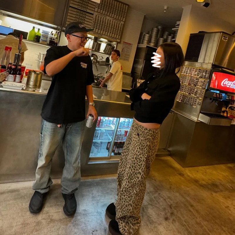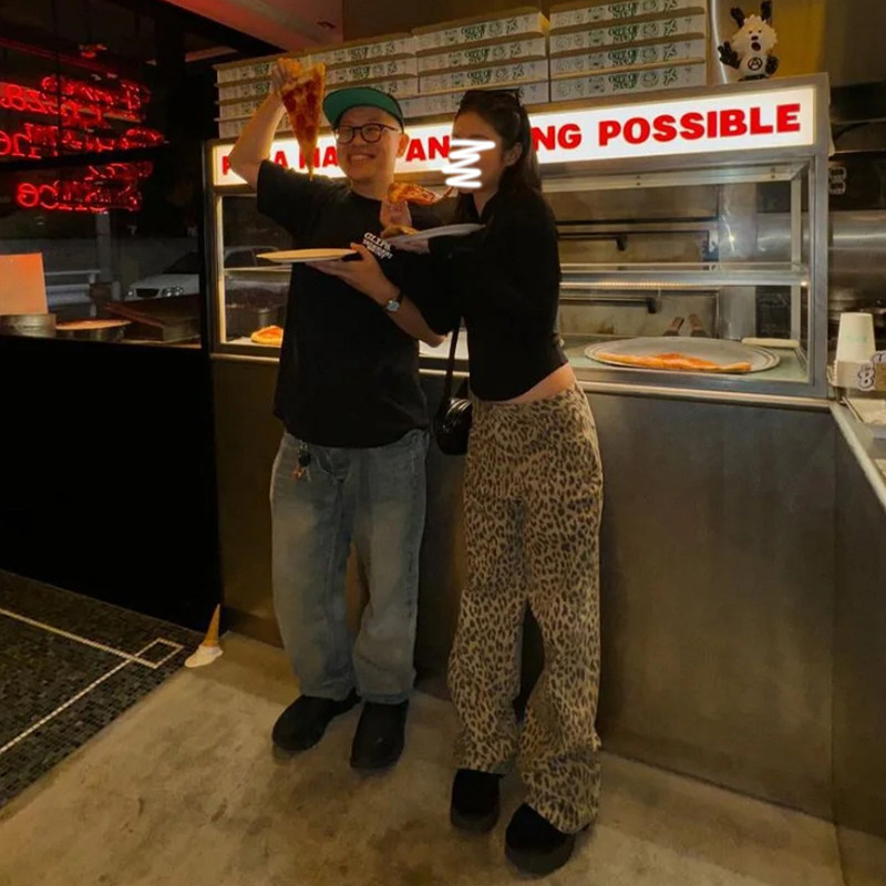 女春秋新款 Jennie金智妮同款 美式 辣妹豹纹阔腿牛仔裤 子 直筒拖地裤由